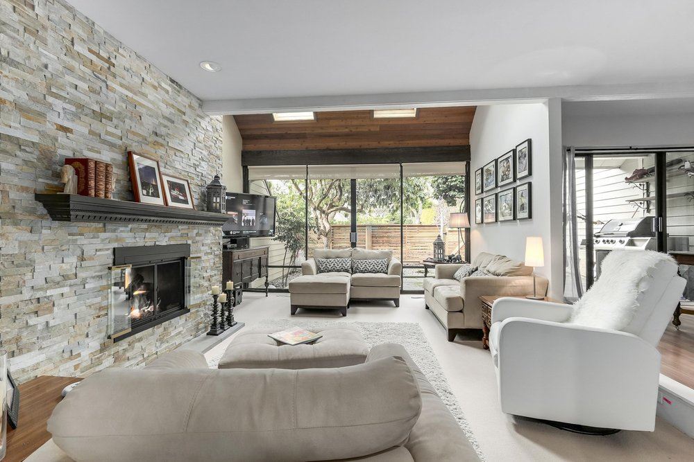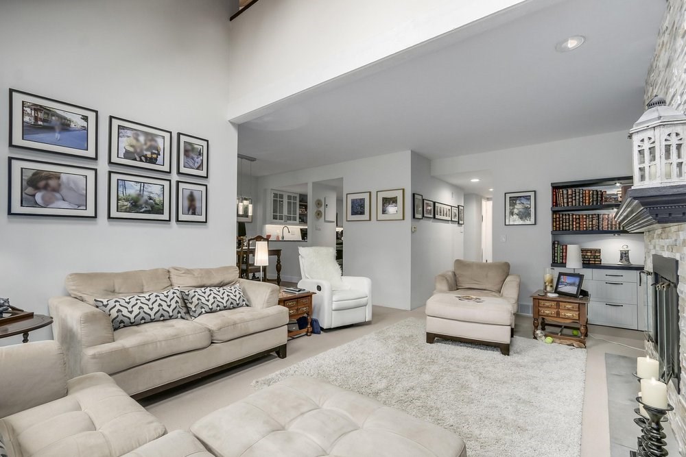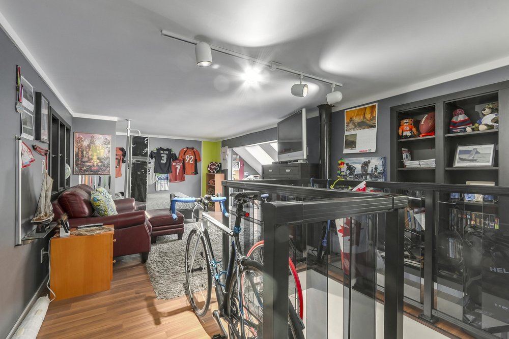 Nestled amongst manicured gardens & a luxurious pool you will find this spectacular renovated home offering an open concept living/dining area with vaulted ceilings & 8ft windows. Central to the living area is a magnificent stacking Ledgestone gas fireplace which reaches high up to the second storey. The spacious gourmet kitchen boasts over 20 ft of granite countertops, stainless steel appliances & a convenient Breakfast bar. The 2nd floor has been reimagined creating a family room/den from the open air loft, a master bedroom & large 2nd bdrm. The spa inspired master, 5 pce ensuite boasts a Carrara marble shower with rain shower head, massage jets & a soaker tub. Above is a bdrm/study/living space with bright skylights.