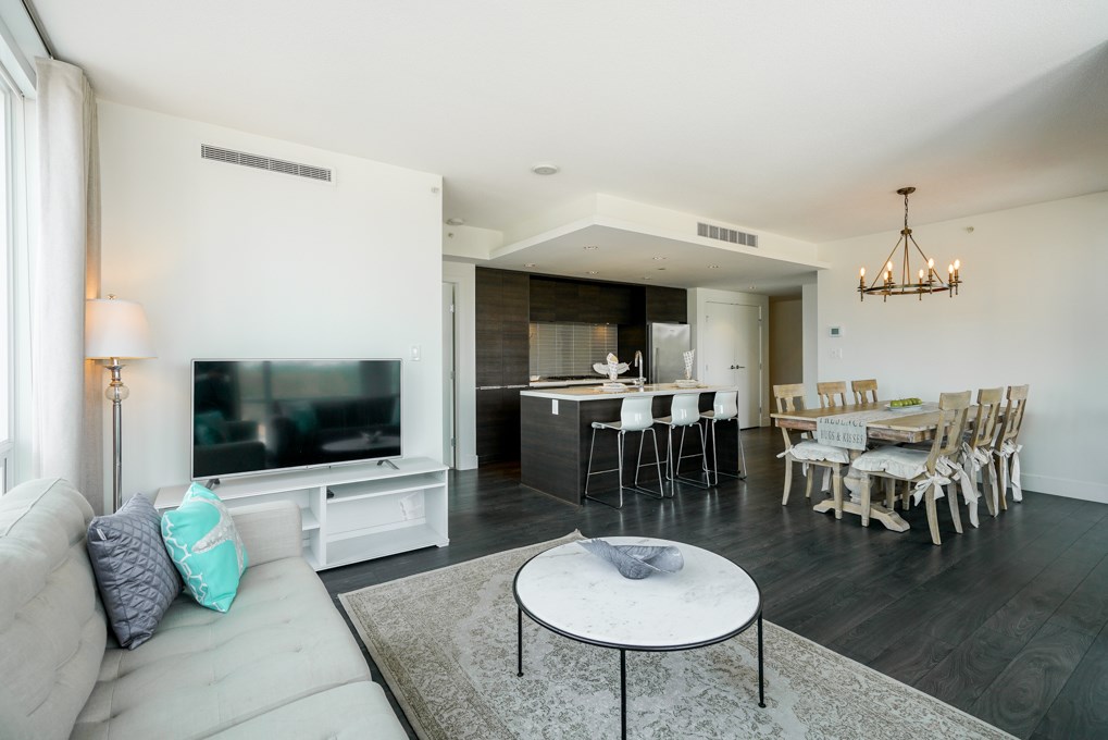 Welcome to Beacon at Seylynn Village. This bright and spacious 2bdrms + den corner unit features open floor plan with living room and separate dining area looking out to a large balcony with gas outlet for summer BBQ'ing. The kitchen features S/S appliances, quartz countertops. Master bdrms includes large walk-in closet, double sinks, and linen closet, floor to ceiling triple ply window & wide plank laminate floors all throughout. Independently controlled air conditioning and heating system for maximum comfort as well as an unprecedented 13,000 sq ft amenities centre! 1 parking and 1 locker *Furniture negotiable*.