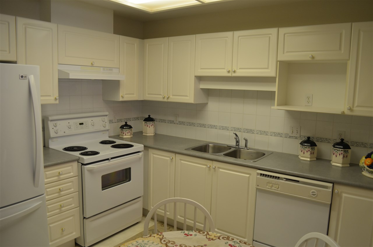 Mrs. Clean lives here!!! Original home owner.... super clean and move in ready. Spacious 1 bedroom and den in prime Pitt Meadows location. Kitchen is all white with white appliances. Gas fireplace and in suite laundry. Large master bedroom that can accommodate King sized furniture. Well run complex and reasonable strata fees. Roof replaced in 2016. 2 parking spaces plus storage locker. Pet and rental restrictions. walking distance to the Westcoast Express, shopping, schools, soccer and baseball fields. Quick possession is possible