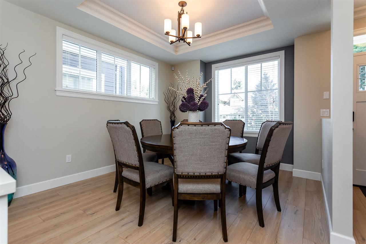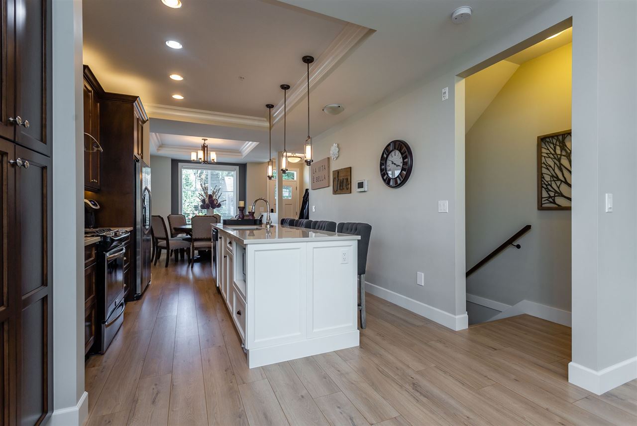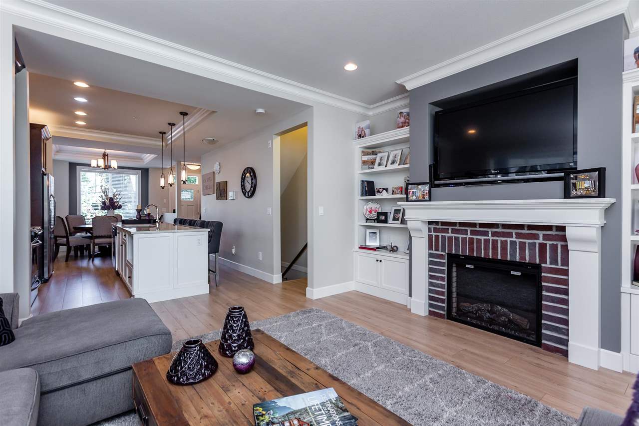 Sought after Brixton Station in Garrison Crossing! Beautiful open concept, end unit townhome with a ton of extras! This 3 bed, 3 bath, 3 level professionally decorated home has a gourmet kitchen with hardwood cabinets, stone counters, custom pantry and stainless steel appliances. The massive island will fit the whole family for those all important gatherings. Extras include a built in dresser in the master, built in murphy bed in the basement, and shelving in the family room. Fully fenced, south facing back yard with high quality artificial grass. Two underground parking spots with direct access into the fully finished basement. Walk to the shops, restaurants, pubs, community rec centre w/pool, the Veddar River and more!