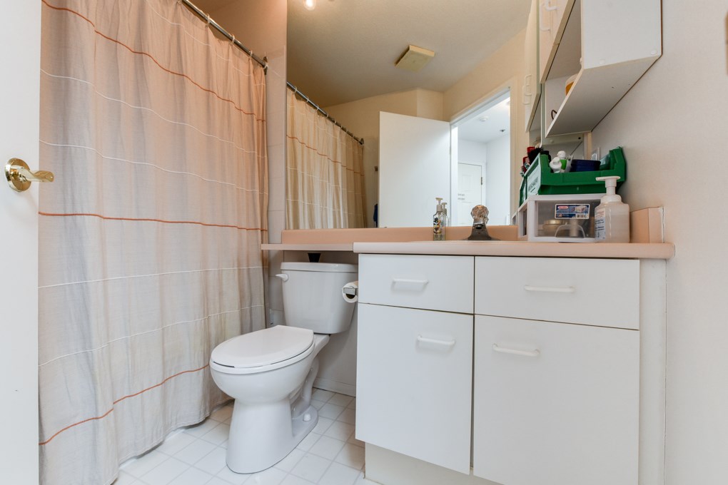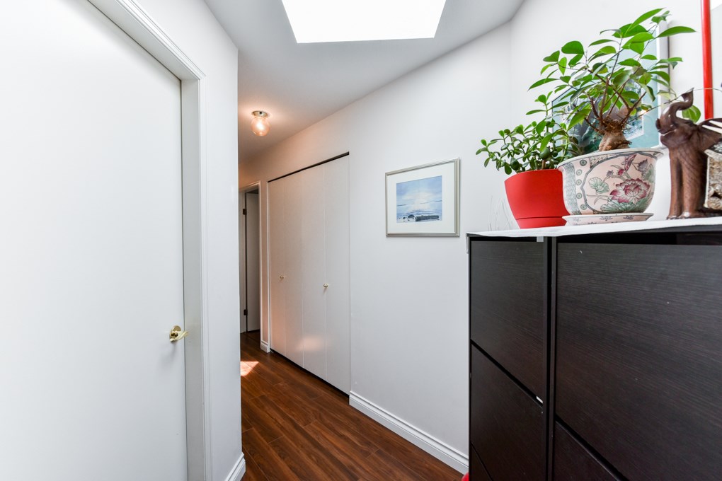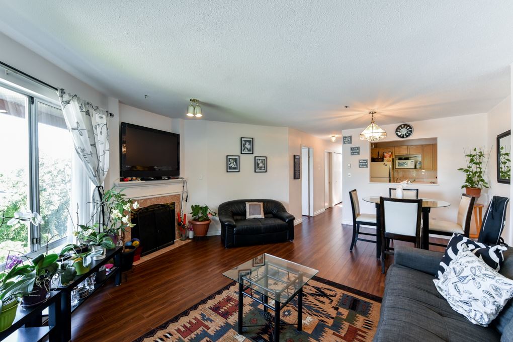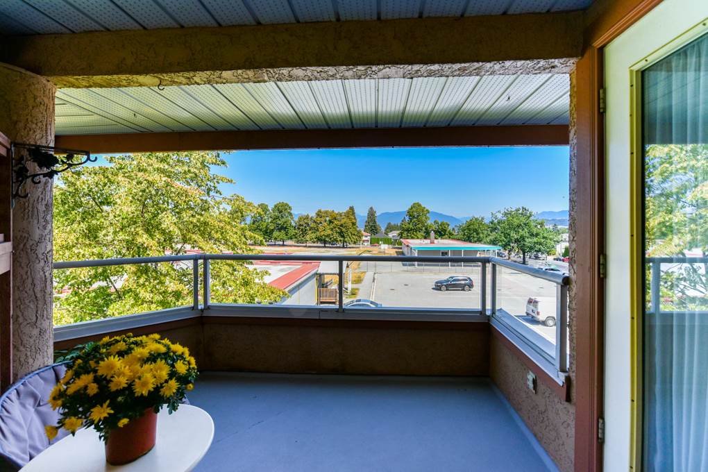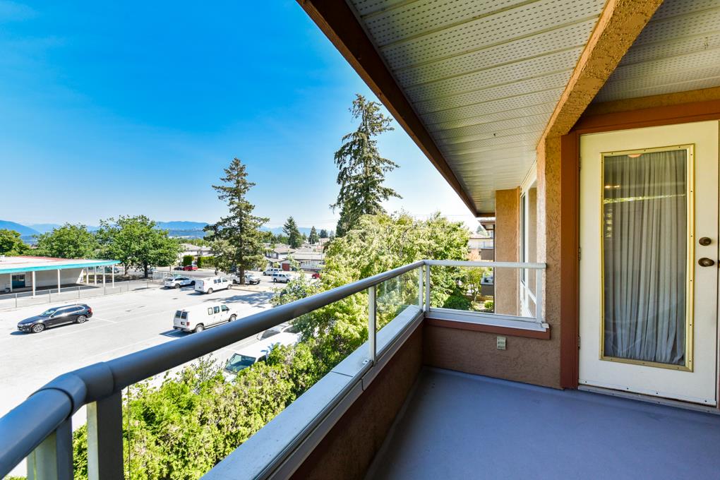 Wonderful top floor corner unit only minutes away from Metrotown. On the quiet side of the building with a great view of the North Shore Mountains. Features 2 bedrooms, 2 full bathrooms, gas fireplace, skylight, and good size balcony. Freshly painted. Super location close to lots of shopping, schools and transportation. Very well maintained building. Roof done in Oct. 2008. Exterior painted October 2013. Gas and hot water included in the strata fee.
