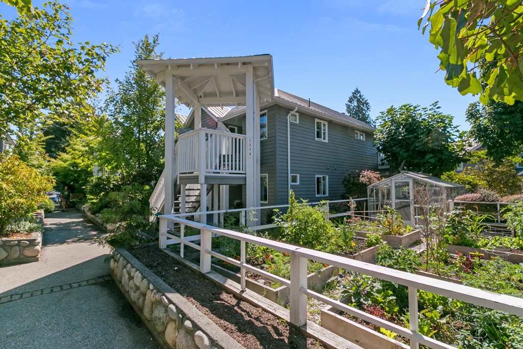 Welcome to 2 bedroom + 2 bathroom townhome at the Illahee. This well maintained upper level corner home is bright, quiet and very private. Well situated location in complex with wrap around balcony overlooking the community garden. Features include vaulted ceiling, updated bathrooms, and gas fireplace. Convenient location with high walkscore of 82, close to shopping, transportation, and only minutes to downtown Vancouver.