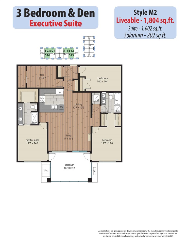 One of the largest suites available on the ground floor. 3 Bed + Den (Style M2) in sought after Yorkson Creek Walnut Ridge 4. All season outdoor solarium space with oversized enclosed balcony with retractable glass panels, ceiling fan, A/C & gas BBQ hookup. 2 parking stalls, 1 secured oversized storage with electricity for e-car. This unit has it all including 9' ceilings, oversized windows, high tech sound-dampening, heated tile floors, natural gas European convection oven, Energy Star appliances, wood closet system, faux wood blinds, heated mirrors in bathroom. Great floor plan with total square footage of 1,602 + 202 sqft solarium. Completion is towards the end of November.