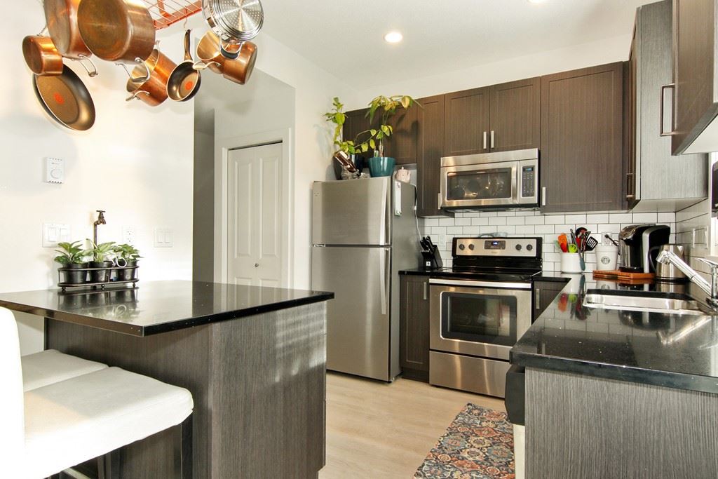Silver Creek! This end unit is nicely situated in the interior of the complex, it has 3 beds plus bonus room & 2.5 baths. On the main you'll find an 'L' shaped kitchen with attached island, quartz counter tops, S/S appliances, pantry and eating bar. There's also space for a eating nook and dining area plus a generous size family room. Also on the main is a powder room, 6'x20' deck and walk-out patio with fenced yard and lawn for Rover! Upstairs is the main bath, 2 bedrooms & master w/walk-in closet and ensuite w/dbl vanity and oversized shower. On the ground level is the bonus room & 1.5 car garage plus 2 spaces in the driveway. Complex also has a great gym and amenities room! You will not be disappointed!