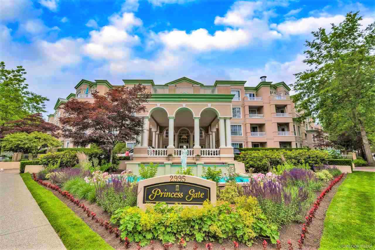 Beautiful 2 Bdrms, 2 baths at desirable “Princess Gate”, an Adult Oriented 55+ Complex. SITUATING in PRIME COURTYARD LOCATION OVERLOOKING MANICURED GARDEN, GAZEBO, CHERRY BLOSSOMS & JAPANESE MAPLES, THIS IS A MUST SEE!! Open, Spacious living & dining room, Large kitchen w/loads of cabinets, 9' ceiling throughout, huge master w/Walkin Clst & full ensuite w/Large Soaker Tub & dble sinks, Spacious 2nd bdrm. Located Close to Elevator & Storage Locker on same floor. Amenities: Indoor Pool; Clubhouse w/Pool Table, Big Screen TV, Bar; Gym; Guest Suites & Onsite Mgr. Fully Rainscreened building. Newer Roof & Paint. Strata fee includes Infloor Radiant Heat, Hot Water, Gas, Recreations. Walk to COQ MALL, LaFarge Lake, Library, Skytrain Stn, Supermarkets & more.