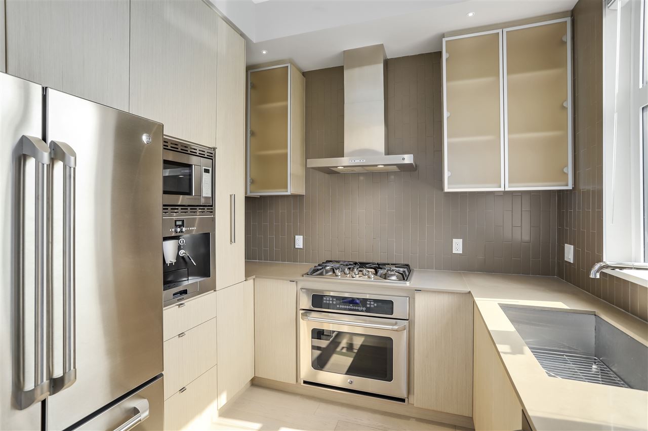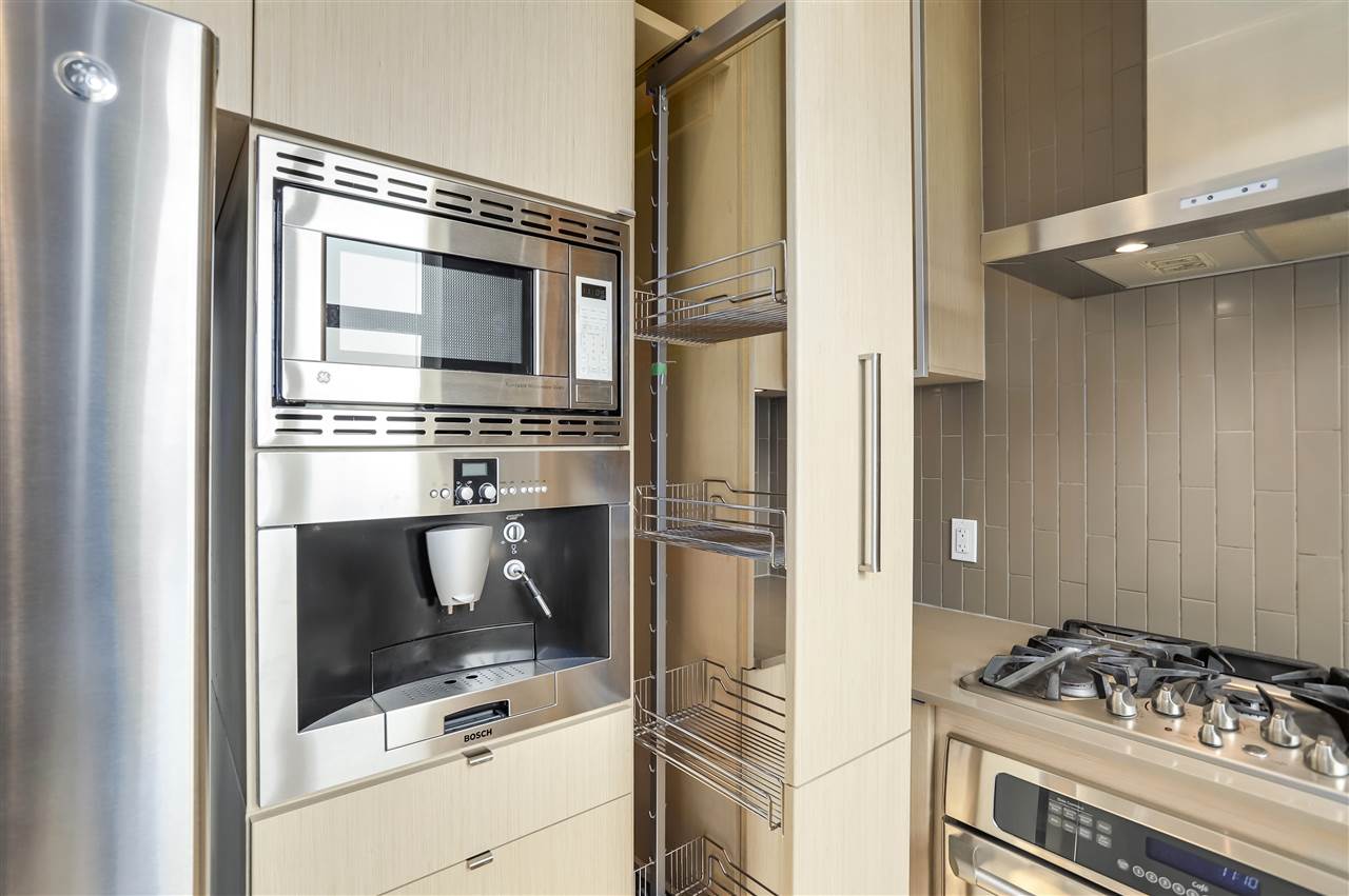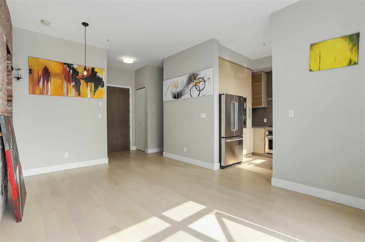 Waterfront! Yes! Enjoy this beautiful water view from your 3 year old one bedroom and den with fabulous finishings like a brick feature wall, over-height ceilings, a contemporary kitchen with pull out pantry, built-in espresso machine-- this one is really worth viewing and shows off the builder, Aragon, at their finest. It's lovely. Enjoy breakfast on your good-sized patio (9x9) with river view. Your suite at The Portage is located in Port Royal and has a gym, one underground parking stall, one locker, room for your bicycle, and a gym. Two pets allowed. Steps to the ferry that takes you to the New West Quay. Call today for an appointment to view.