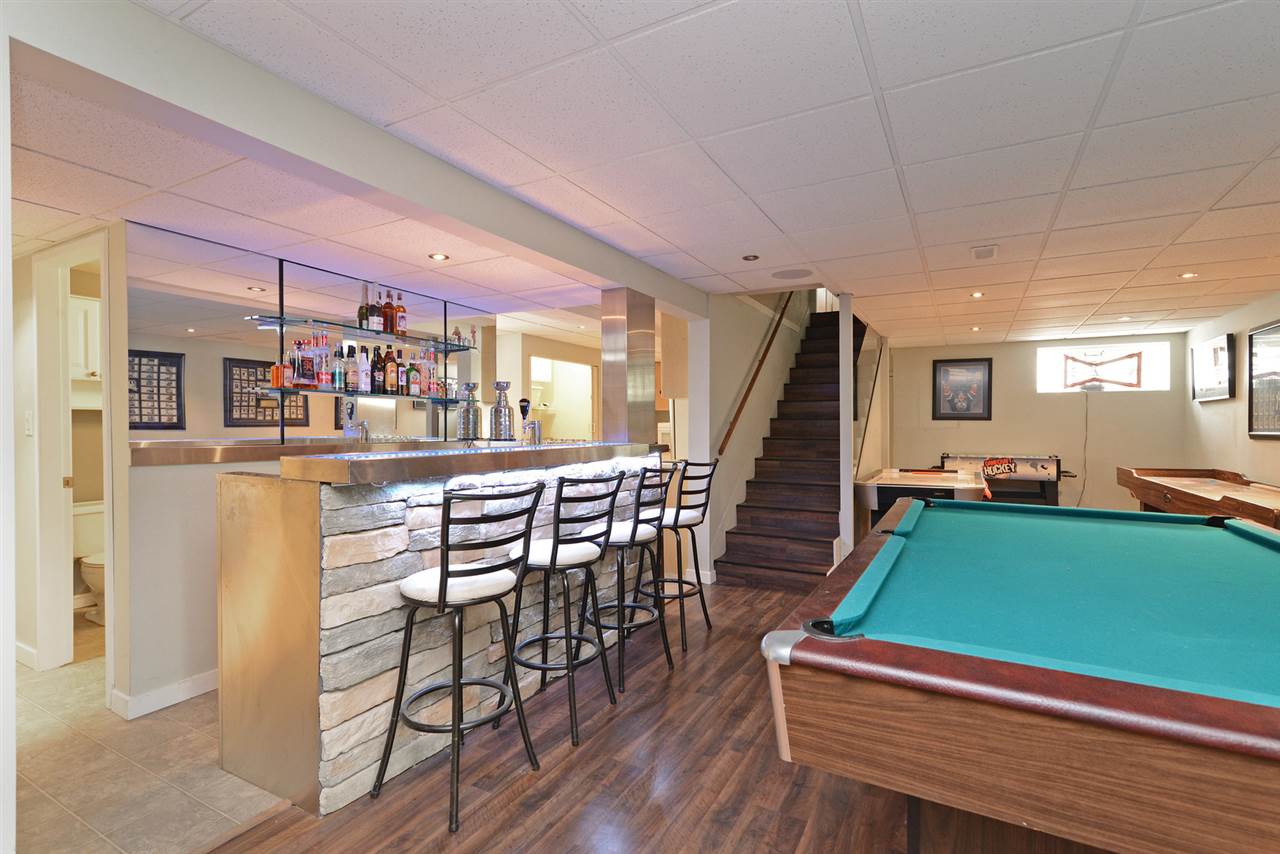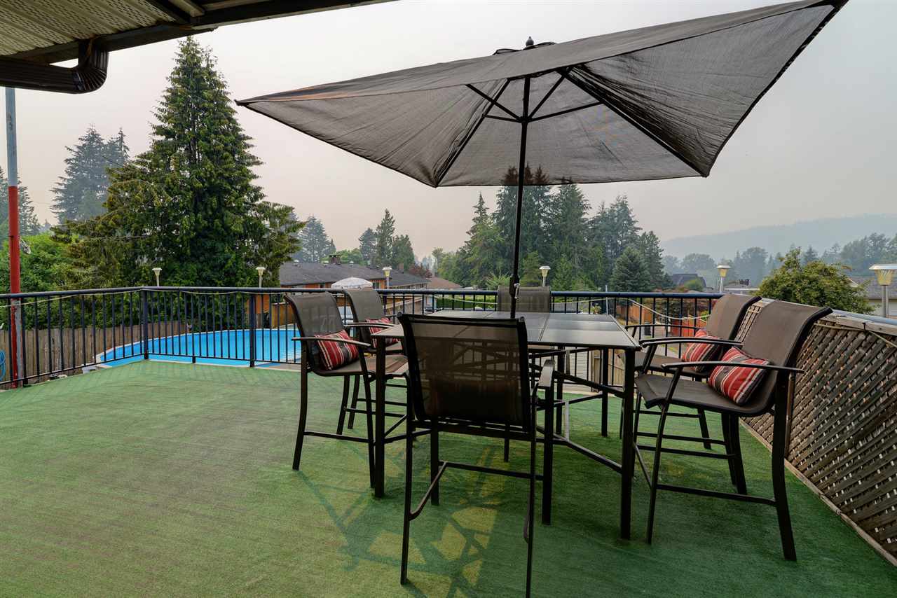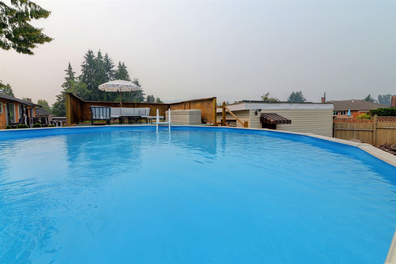 Beautifully maintained home with STUNNING VIEWS! Situated on the upper & quiet part of Blue Mntn on a large lot with lane access. This home boasts lots of updates including a new roof & new dble glazed windows. Main floor features a bright & spacious floorplan, beautiful kitchen with gas range, granite counters & backsplash + adjacent eating area with built-in booth seating, large living room with cozy fireplace, 3 ample sized bdrms & 4 pc bthrm. Downstairs is easily suite-able with kitchen, rec room, bdrm, 3 pc bthrm & separate entry. Currently boasts a games room complete with large projection TV & built-in surround sound. Backyard is an entertainer's dream with 2 large decks + patio, hot tub & above ground pool! 2 garages + parking for RV. Bring all your toys! Great central location!