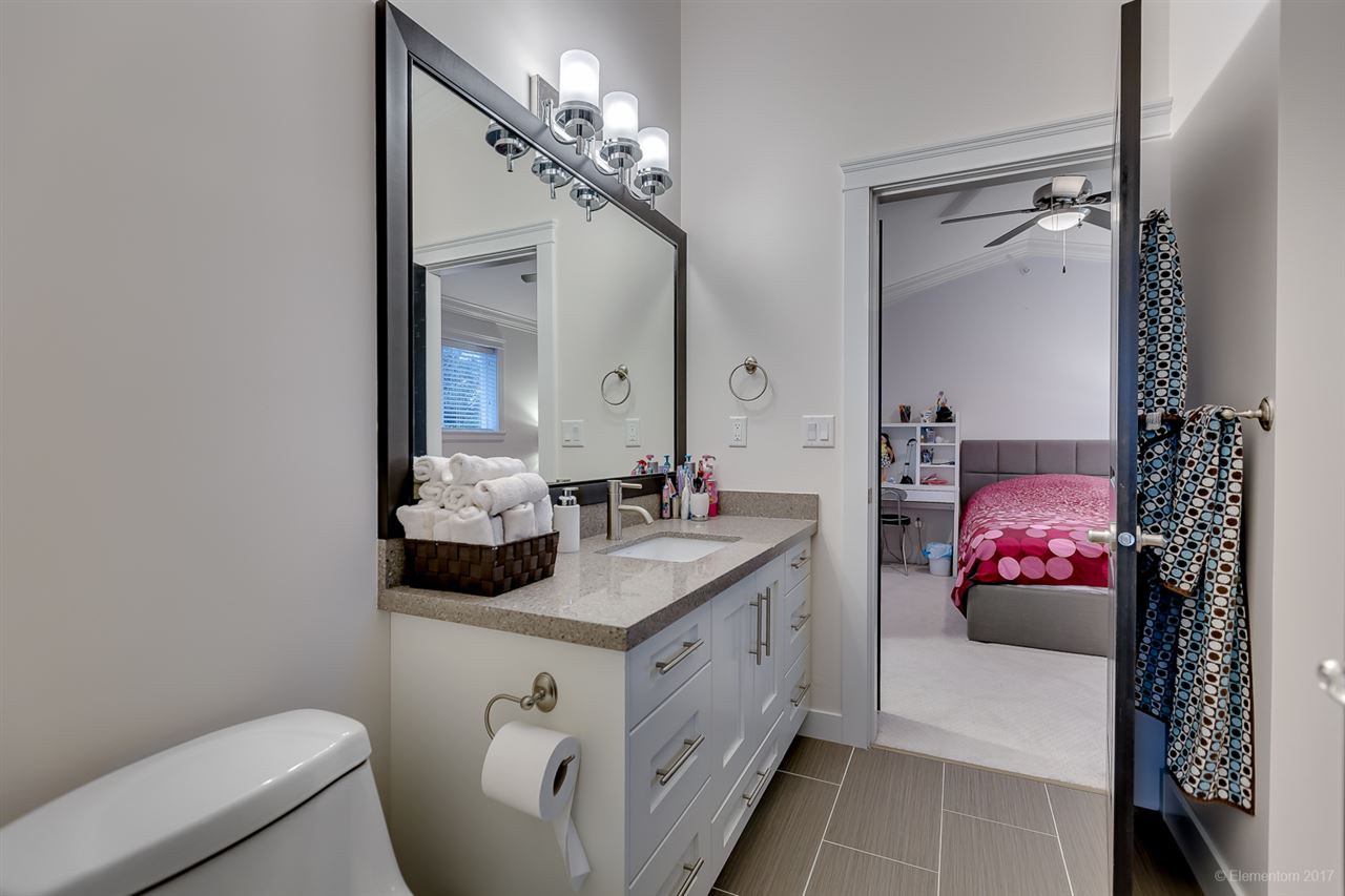This is a stunning custom home with the perfect mix of a spacious family home and mortgage helper income. Quality is evident in the features and finishes throughout, including inviting formal living and dining areas, a spectacular grand kitchen, guest bedroom, powder room, comfortable family room area, air conditioning, and exquisite crown mouldings with built-in ambient lighting. Entertain outdoors in your partially covered deck overlooking the easy care backyard. Upstairs you will find 4 spacious bedrooms including a sprawling master bedroom with a large ensuite and walk-in closet. There is another full bath on this floor, as well a semi-ensuite bathroom shared by 2 bedrooms. There is a legal suite as well as in-law accommodation. Close to Coquitlam Centre, Fremont Village, and transit!