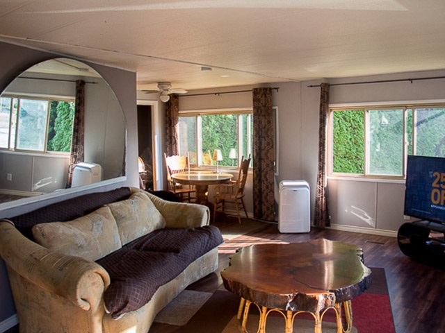MILL CREEK VILLAGE: Located on one of the largest, most private cul-de-sac lots in the park & being one of the largest double wide units available at 1,344 sq ft, 3 bedrooms, 2 full baths, you will not want to miss out on this one! This unit features laminate flooring through, separate laundry room, spacious master bedroom and ensuite with soaker tub and separate shower, and a private, 17' x 10' deck off the family room overlooking a creek and newer roof. The backyard is treed and borders a creek, very quiet and private and close to Shopping. Seller Motivated.... Open house Saturday. Nov 24th (2-4)pm