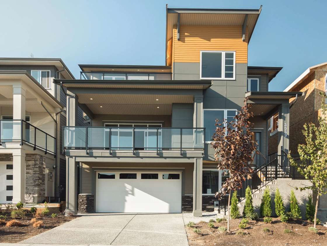 This stunning brand new three level contemporary home offers luxury living in the most prestigious area of Burke Mountain -MOVE-IN ready- Just minutes from the new Evergreen skytrain station and all levels of schools. 5 bedrooms & 3-1/2 bathrooms w/ gorgeous finishings throughout. Features include Stainless Steel appliances , spice kitchen w/ gas stove, quartz counter tops & a fully finished basement with a wet bar.Rough-in security system, Rough-in Vac. Spectacular open planned kitchen & great room. Enjoy your large outdoor front decks over looking Mount Baker. There are 5 Homes ranging from 3500 sqft to 3800 sqft left some with Legal Suites .Open House 2-4pm Wed,Thurs, Sat & Sun