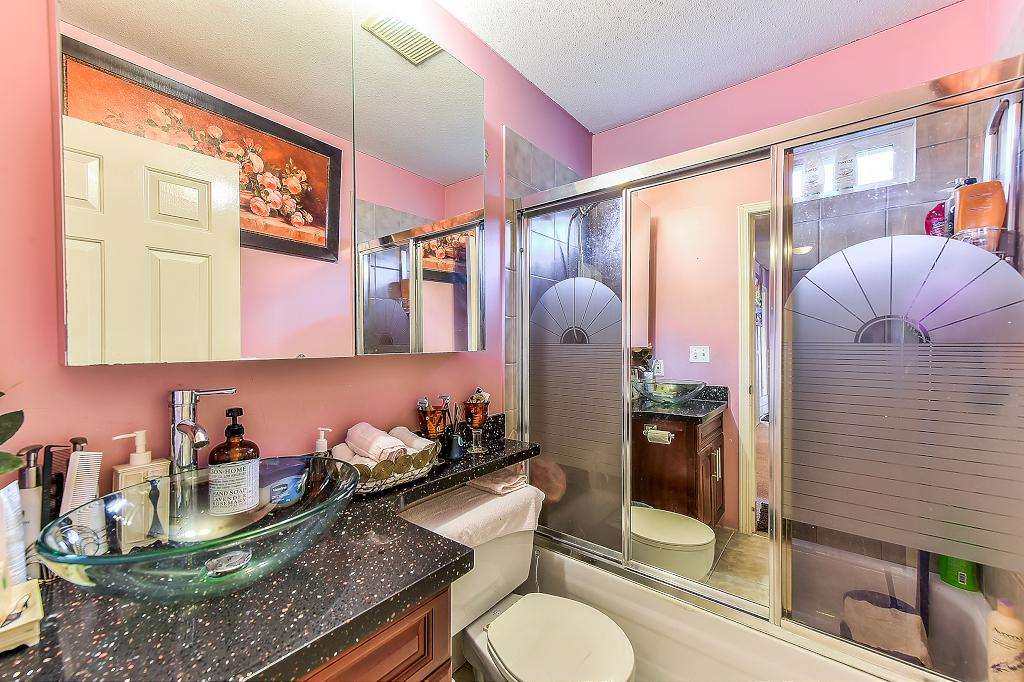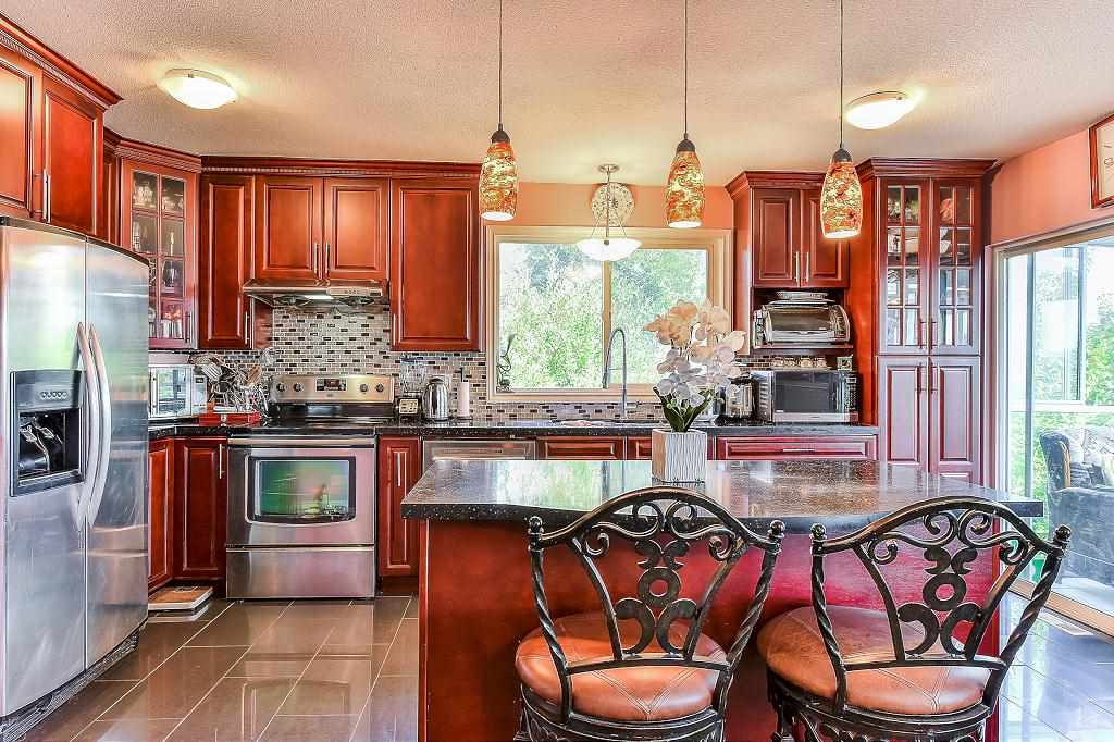 Price to sell! SFH at townhouse price* Beautiful & Spacious 2-level home on a huge private lot & next to park. Upstairs feature 3 bdrms, 2 full baths with ensuite in Master Bdrm, open layout, deluxe kitchen w newer oak cabinets & granite counters & floor, open to newer sun room (w/gorgeous view of Portmann Bridge and mountains) & newer covered BBQ deck. Lower level features a laundry rm, recreation or extra guest bdrm (can also use as a roommate or student rental) & a 2 bdrm suite with separate entrance as a mortgage helper. Outside the house is a lovely garden of exotic plants & shrubs. Double garage is attached with lot of front street parkings. Fortunately located in a cul-de-sac w/kind & caring neighborhood. Easy access to HW 1&7. Close to shopping, entertainment centre, school & bus.