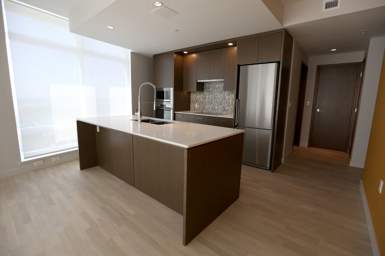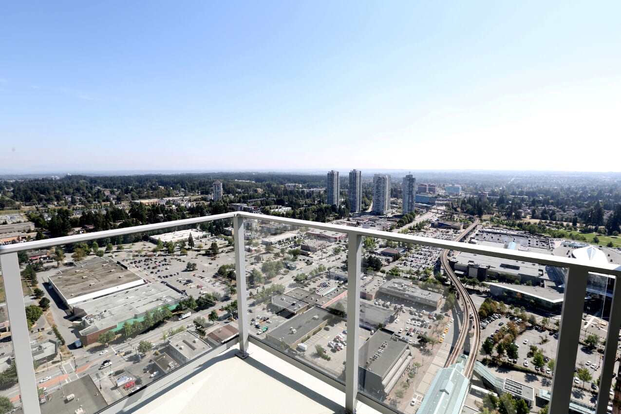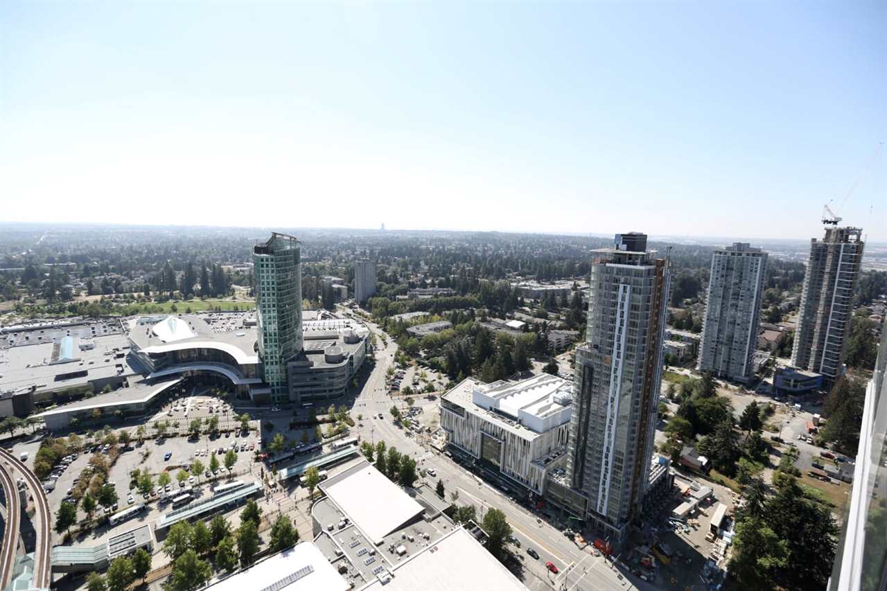 The Residences, Surrey's Flagship Residence at 3 Civic Plaza Development. This 39th FLOOR, 1248 square foot, 2 bedroom and den, 2 bath property features high end finishing. Large 102 square foot balcony with unobstructed views. Steps to Skytrain, Central City Mall, SFU, KPU, Civic Plaza, City Hall & Hotel, coffee shops & library, & planned LRT system. TWO PARKING stalls and locker included. This premium condo has an open concept layout with floor-to-ceiling windows, exercise center, elevator, in-suite laundry. You won't find a better location close to this many amenities. MLS# R2300833, Unit #4206 with 2 bdrms also available. No GST.Rentals Allowed