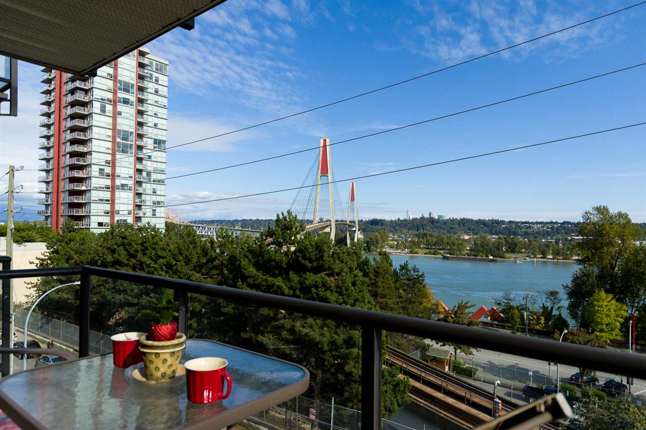 WATER VIEW - Fraser River- South East Exposure. Located in the HEART of Downtown New Westminster! This stunning 2bdrm, 944 sq ft, corner suite, featuring beautiful river and bridge views. w/ stainless steel appliances, insuite laundry. Great open floor plan with large kitchen and eating area. Living room with gas fireplace and deck, . Bonus 2 parking stalls and storage. Ideal location only minutes to New West Quay, Convention Centre, skytrain, shopping, restaurants, gyms, shopping & schools. Do not miss it! - Showing will resume on November 21st.