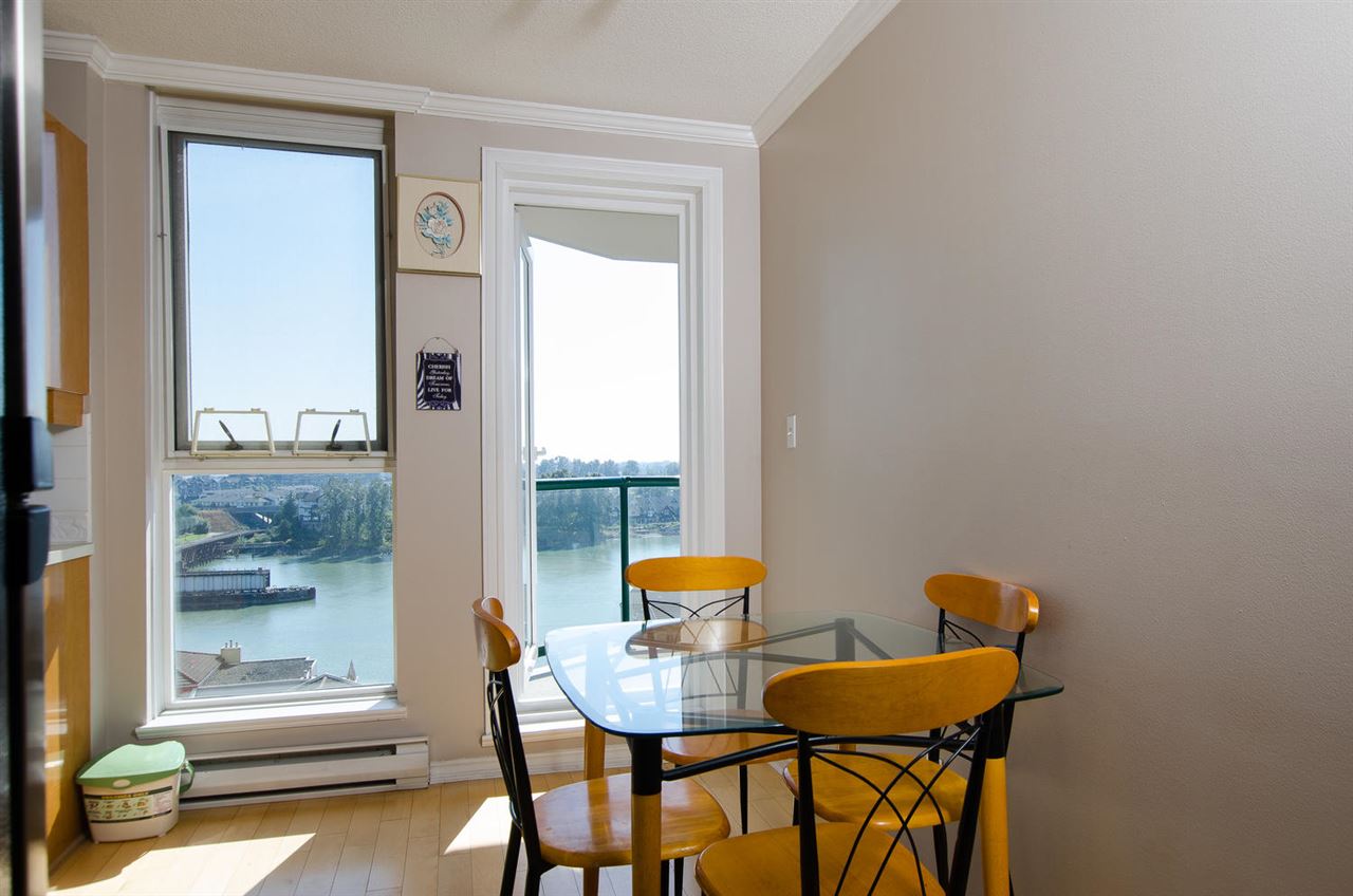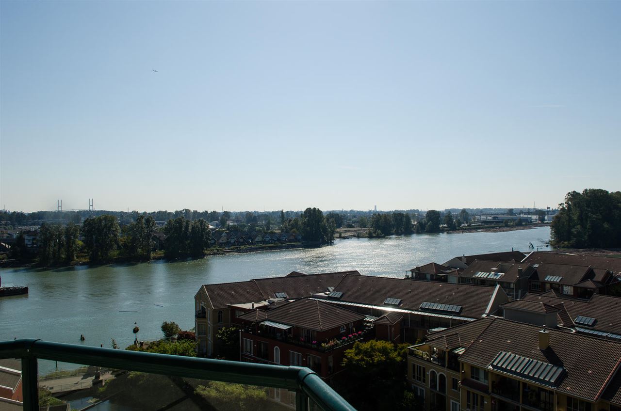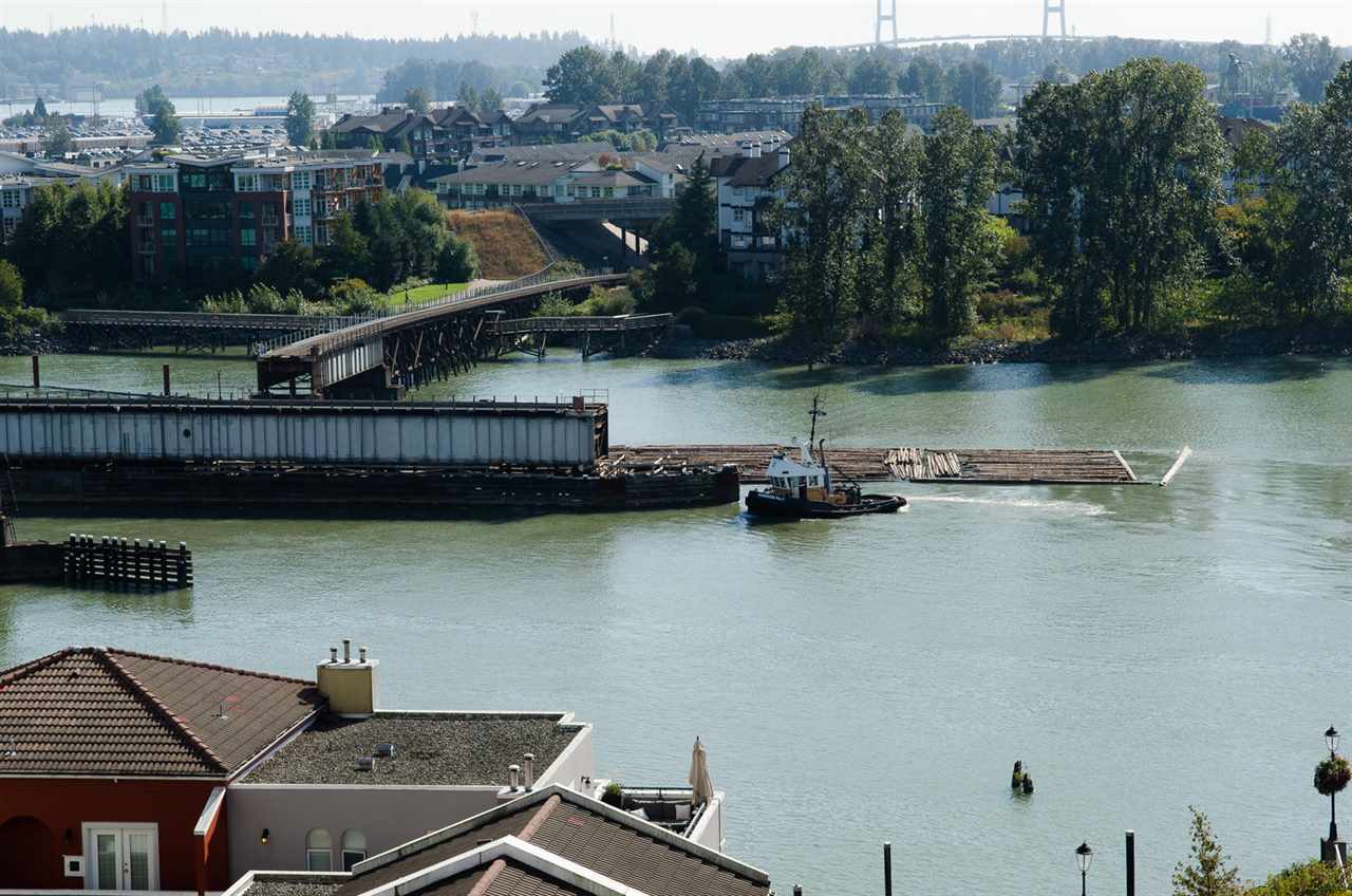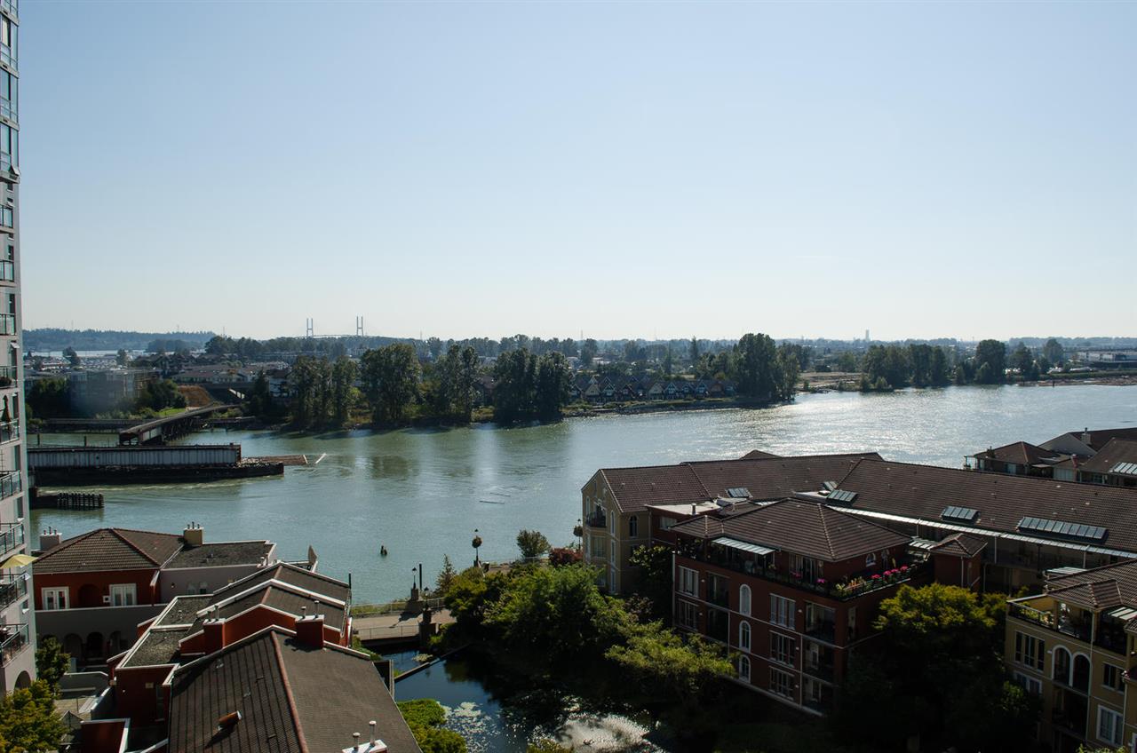 Laguna Landing at The Quay. Enjoy a relaxed picturesque Waterfront lifestyle in this large, Rarely available, much sought after floorplan in Central New West.2 bed,2 bath,2 parking condo w/ sweeping unobstructed River views. Big eat in kitchen, dining/living room with gas fireplace (inc. in maintenance fee.) Spacious bedroom w/ ensuite bath and direct access onto covered balcony and more views.1 storage locker, in-suite laundry, 2 parking, gym & live-in caretaker. Great proactive concrete building, fully rainscreened; re-piped in 2016. Transit at door, walk to Skytrain, Westminster Quay, Douglas College, Entertainment District, restaurants, shops & dog park. Two pets ok,dogs under 30 lbs. make resort living your new lifestyle year round today!
