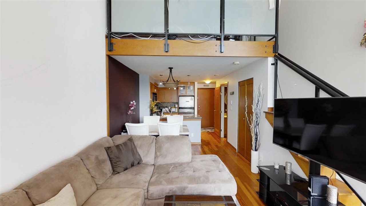Rare to find! Concrete loft at the waterfront, Modern Murano Lofts . This two level unit is bright and spacious, with 17’ from floor to ceiling windows. Includes gas stove, fireplace, wood flooring, granite counter tops, in-building parking and more. Short walk away from Columbia Square and Sky Train. Call now for private showings!