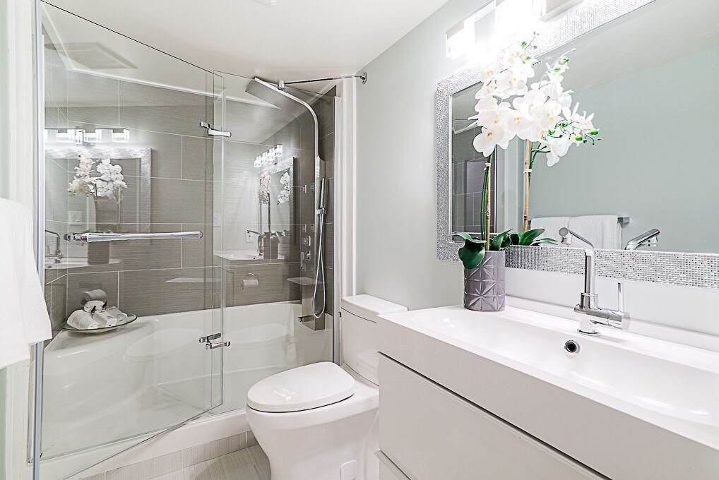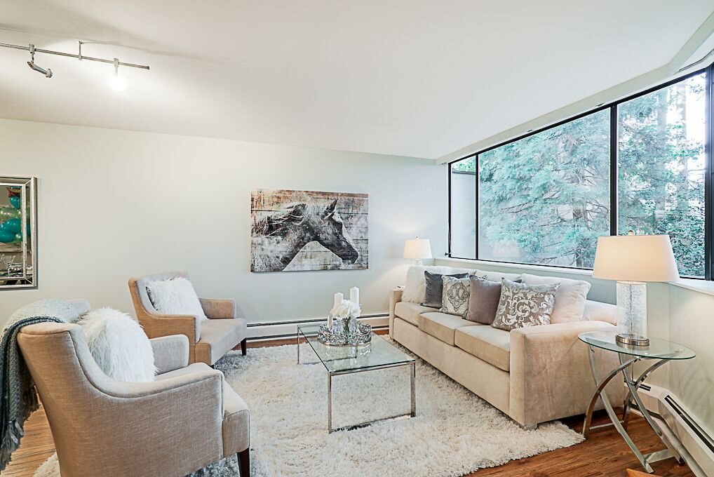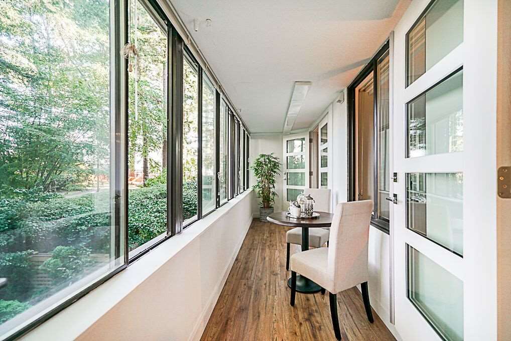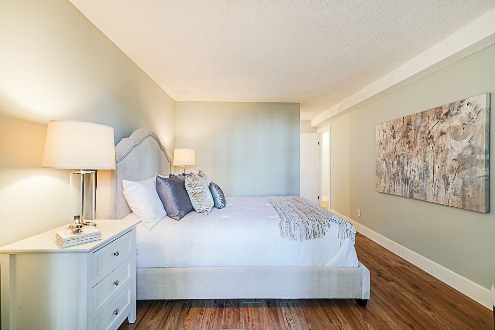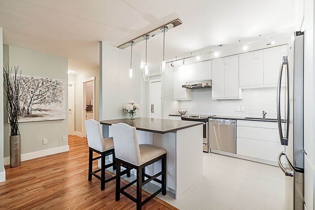 Recently Reduced Price. Luxury adult living in the heart of White Rock. Completely renovated & Move in Ready! This concrete building is just steps away from shopping, dining and amenity needs. Featuring designer paint colors and designs with ceramic tiles and low maintenance laminate flooring throughout. Spa like bathrooms with modern designs and fixtures. The kitchen is a gourmet's delight with stainless steel appliances, quartz counter tops, custom glass tile backsplash and extensive cupboards. Enjoy open concept living with a formal dining room and living room large enough to accommodate all of your full size furniture. Spacious Master Suite with California closet, en suite and stunning French Doors leading to the sun room. Ease of in suite laundry. Vendor open to reasonable offers