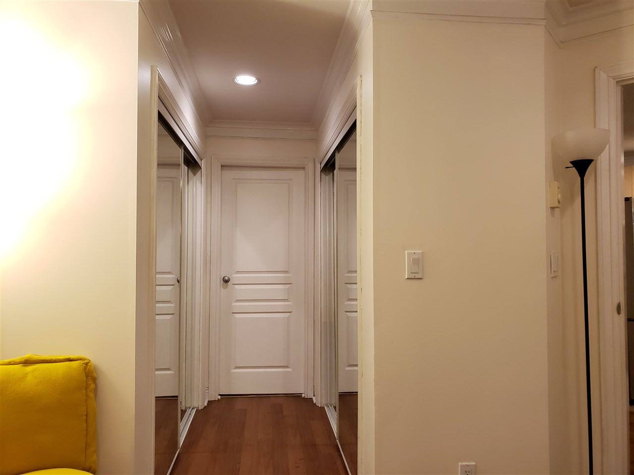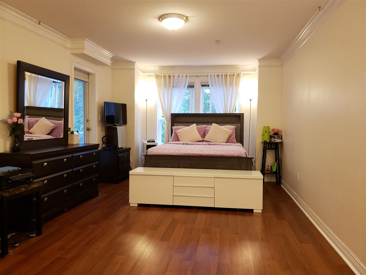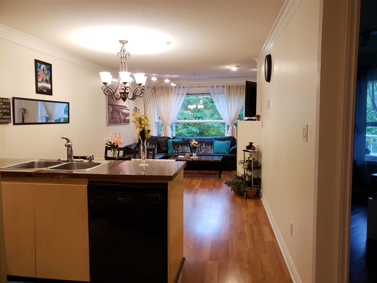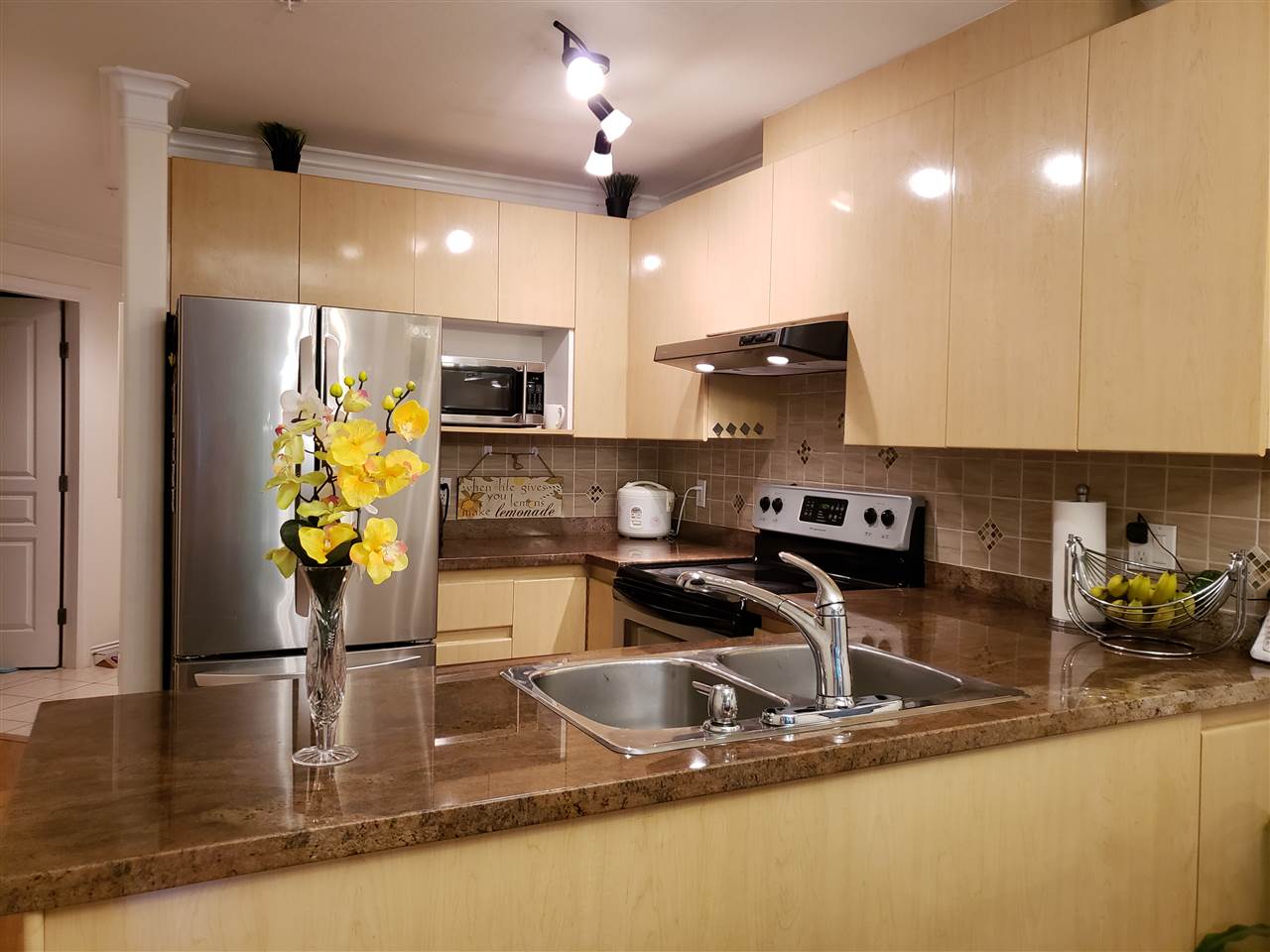 THE CROSSING! Immaculate and bright EAST facing 2 bdrm unit in quiet cul-de-sac. This beautiful unit offers laminate floors throughout with recently painted walls and crown moldings. Open concept kitchen/living/dining w/granite countertop, SS appliances and recently replaced front loading washer and dryer. Large PRIVATE balcony offers acces from both living room and master. Well managed building with great amenities like bike room, guest suite, underground parking and security system. Just walking distance to shopping, schools and transportation. Very quiet location away from traffic noise. Open House Sunday Nov. 25th 1230pm to 230pm