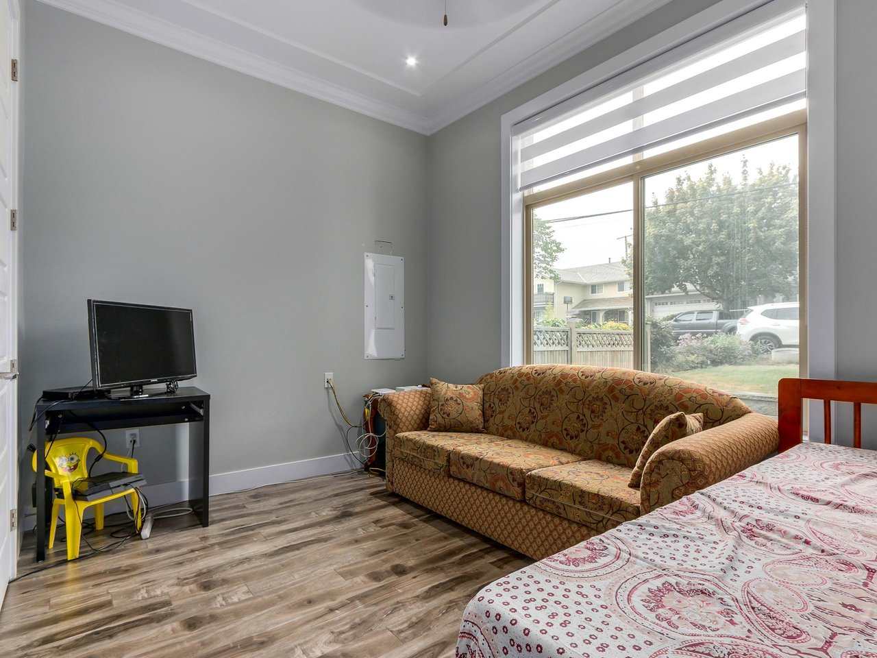 This gorgeous custom built 7-bedroom, 5.5-bathroom, 3600+ sqft home is eagerly awaiting a new family! Built in 2017, this stunning home features a great open layout with raised feature panel walls for a contemporary feel! The home’s soaring high ceilings, entertainment size kitchen island, 10’ floor-to-ceiling family room doors, great deck, and open floor plan (which allows for an abundance of natural light) makes this home PERFECT for hosting and wowing guests. Featuring 2 master bedroom, located on the top floor, the home can accommodate the differing needs and structures of ANY family. Mortgage helper generate $2100/mon. The home is also walking distance to the Sky train station.