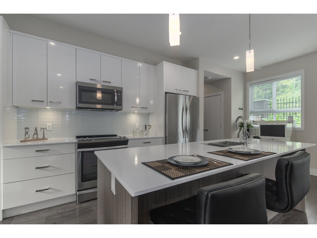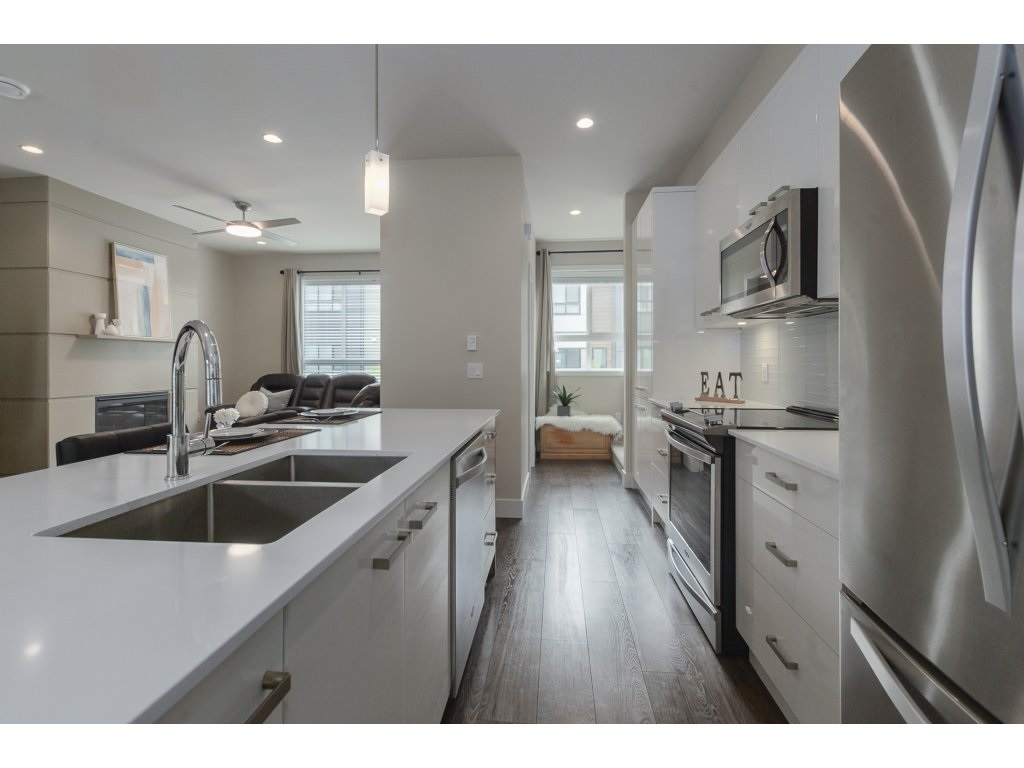 Welcome home to Parallel North! LIKE NEW 3 bed/3 bath townhouse in desirable East Abbotsford. Main floor features an open concept living space complete with patio perfect for entertaining. Modern features throughout with quartz countertops, 9 ft. ceilings, S/S appliances, front loading washer and dryer. Upstairs features 3 bedrooms, spacious master with ensuite, and laundry. Garage is big enough for 2 large vehicles. Only steps to Parallel Marketplace with restaurants, coffee shop, fitness, yoga, liquor and more. Easy Hwy #1 access. Desirable Yale school catchment. Rentals and pets allowed. Call today!