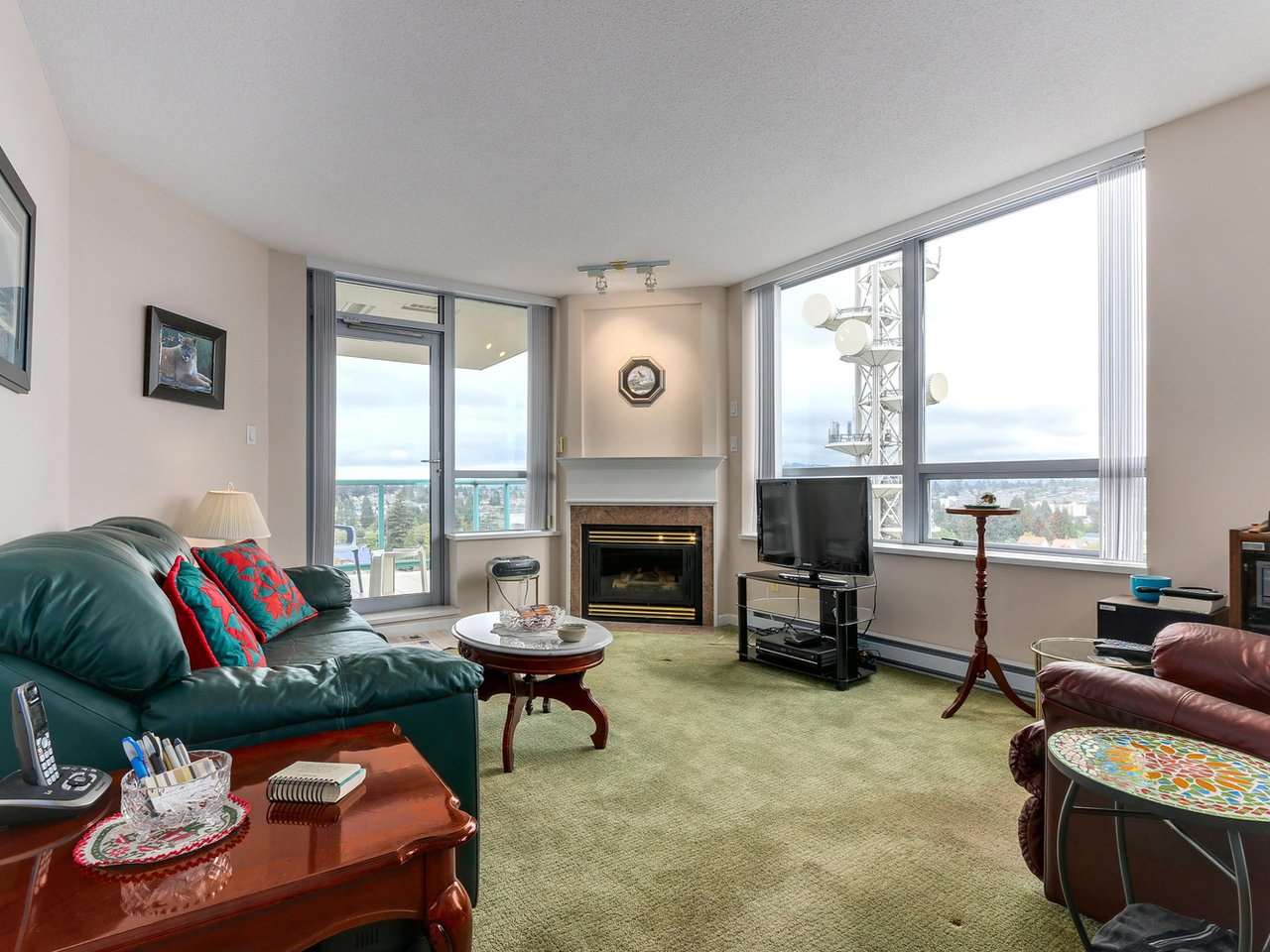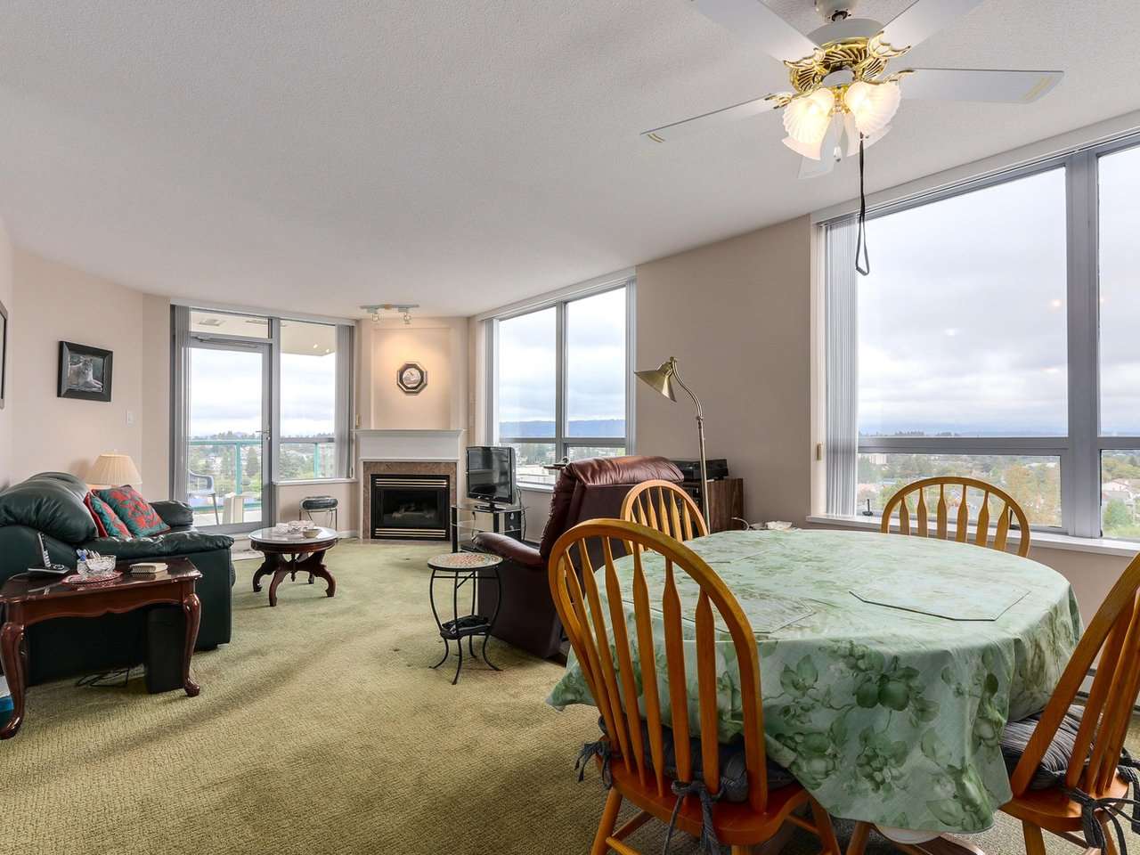 OPEN HOUSE SUN DEC 9, 2-4 "THE WOODWARD" Reduced to $ELL! SECURE HIGHRISE by Bosa . Excellent, convenient location above Royal City Center with direct access to this Mall + plenty of guest parking. No need to walk outside in bad weather...just put on a sweater and meet your friends downstairs for a coffee or dinner! This bright & spacious 2 bdrm, 2 full bath($step in tub) SW facing CORNER UNIT features Mountain + city VIEWS! Covered balcony too. Enjoy the kitchen featuring a large center island open to the dining + living room. Gas fireplace, cozy carpets and walk in laundry room (4 yr. old washer + dryer). Enjoy shopping, restaurants + medical services at your doorstep LEVEL walk to library, Park, Century House. Secure U/G parking + storage locker.Immediate possession. Move in today!