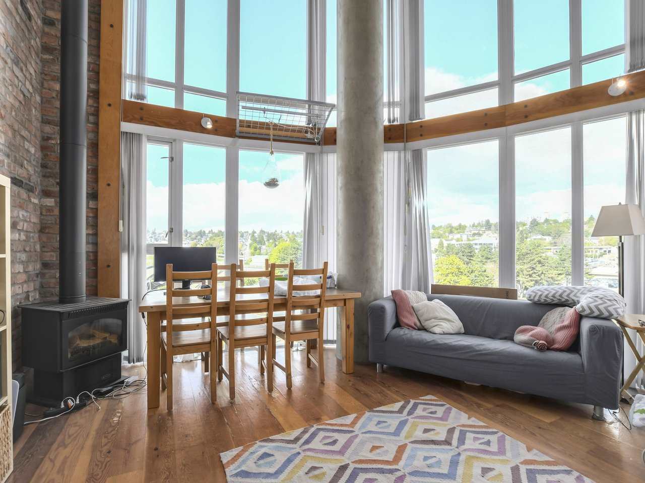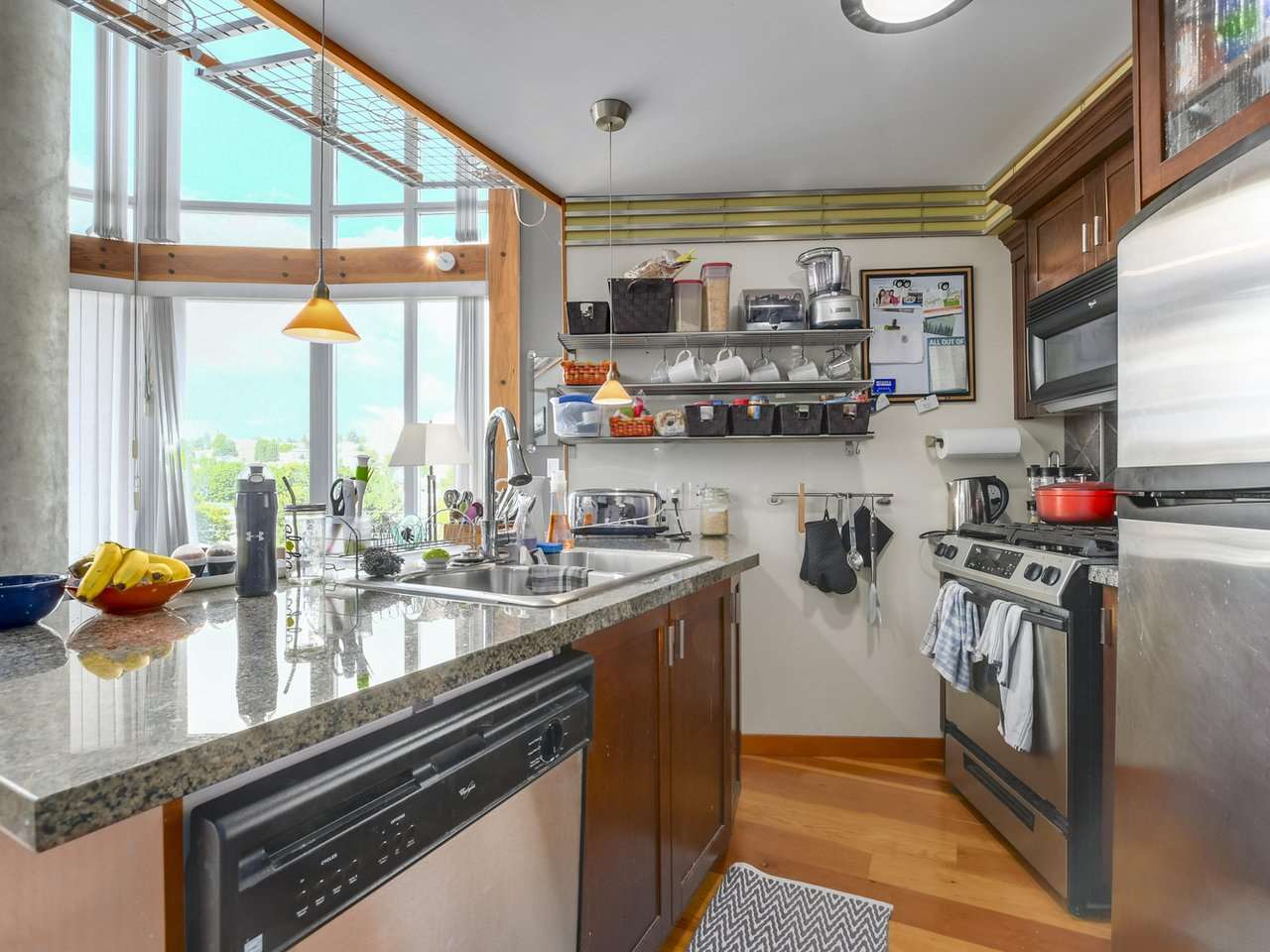 A gorgeous one bed, two bath (683 sq) corner unit in the sought after Murano Lofts with a river and city view. It has the curved floor to ceiling windows at the corner of the unit with ample light. It comes with all the fabulous Murano Loft finishings like: 17' floor-to-ceiling windows, fir floors throughout, gourmet kitchen with granite counter tops, Kohler fixtures, s/s appliances, and maple shaker style cabinets. New West Quay boardwalk and dog park are nearby and the shuttle bus is one block away. Comes with one parking spot. Rentals are allowed and two pets (cats or dogs) are allowed with no weight restrictions.