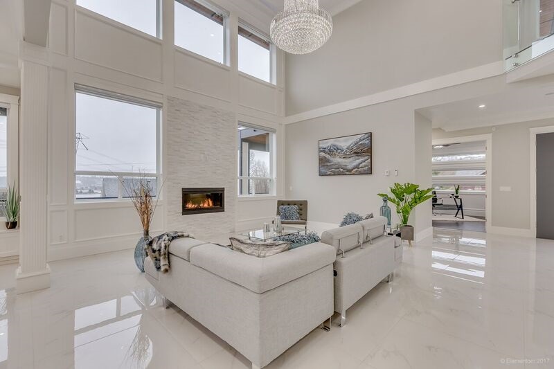 Unbeatable value!! Brand new Luxury home!! w/just under 6000 sqft of living space w/Open concept flr plan.Main FLR features high ceilings,formal dining rm,generous size fam rm w/gas f/p & a private office w/wrap around deck w/amazing views of the fraser river,city & bridges.,master bdrm & gourmet kitch equipped w/top of the line appls,inc a spice kitch w/quartz countertops & nook opening into your lrg wrap around deck,built-in security,motorized blinds.Upstairs, 4 spacious bright bedrooms, 3 full baths +laundry room.A luxurious master w/lrg bay windows & private deck w/ gorgeous views, spa-like ensuite w/make-up vanity & WIC.Below has a huge Rec/rm w/full wet bar,games rm &steam bath & walk out 2 bedrm legal suite.Close to shopping, schools and transit w/ easy access to hwy & Laugheed.