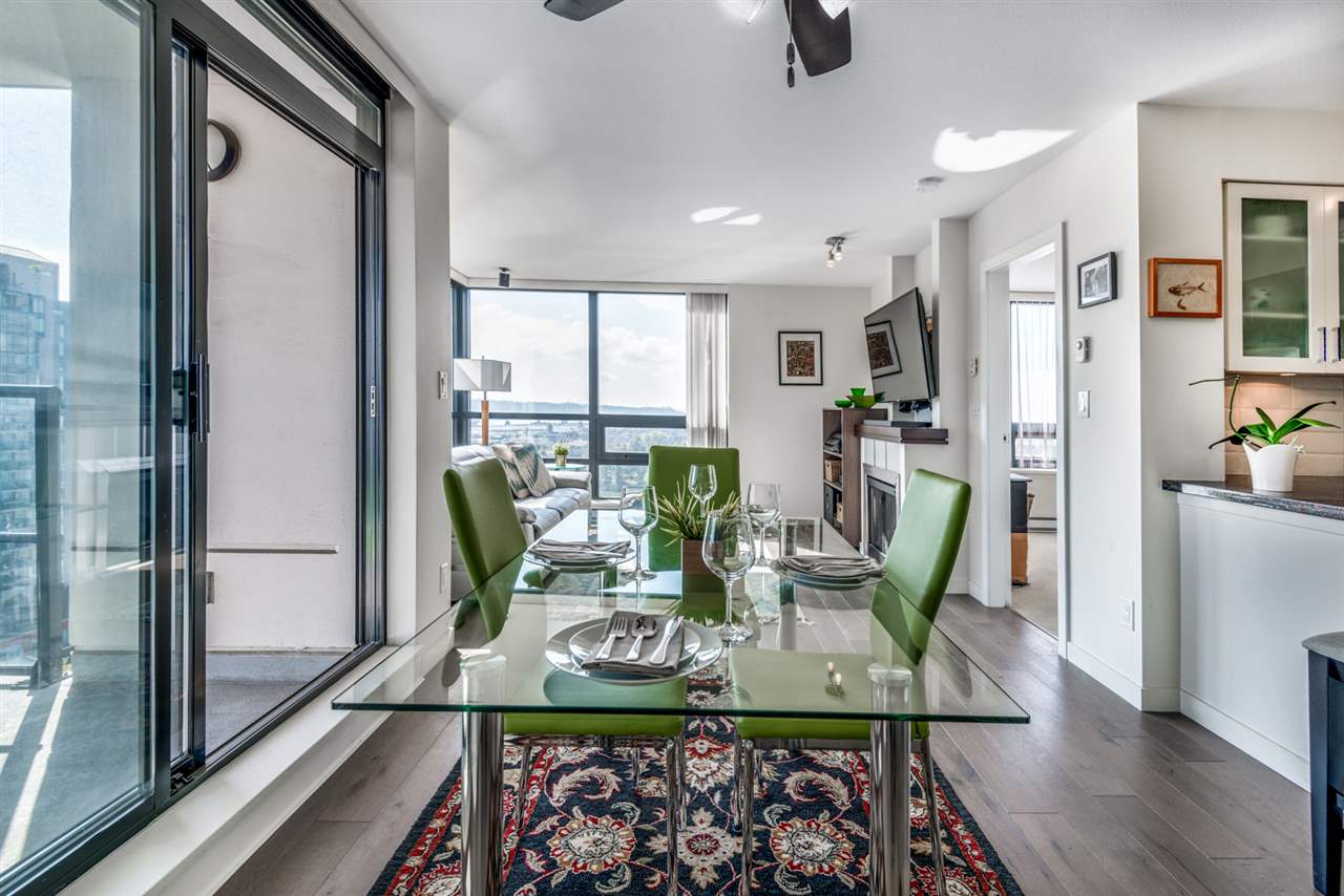 Panoramic views of the Fraser River and Queensborough. This 2 bedroom, 2 bathroom, 865 qft condo is sure to impress. Showcasing its beautiful hardwood flooring, open concept layout and incredible views. The kitchen has a great feel with its frosted white glass upper cabinets, dark features below, beautiful backsplash and stainless steel appliances including a gas stove. The bedrooms are separated across the condo with its second room overlooking the Fraser River. Your big master bed has a great ensuite with its own shower and bath. This corner unit has an amazing patio to enjoy, 2 parking spots, 1 storage, allows pets and rentals. Plus you're only moments away from the Skytrain.