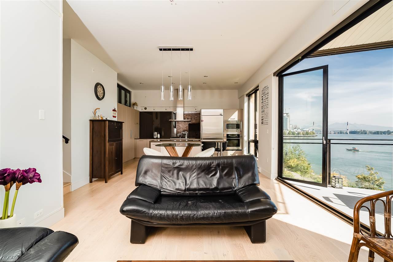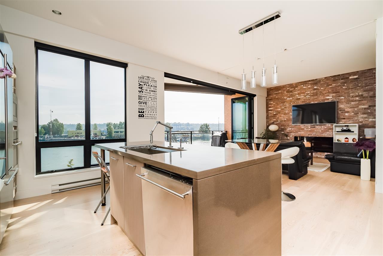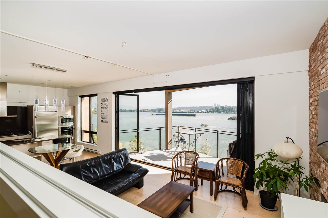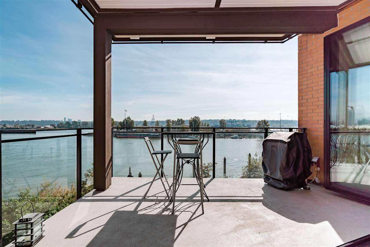 RARE FIND! Panoramic Water View property with view from every single room. The loft style 2 bed/2 bath features, 10ft ceilings, floor to ceiling windows and unique glass folding wall system that blurs the line between indoor and outdoor space, leads to a huge private balcony. Quality built by Aragon, exterior is capped with a high tech steel roof and is finished with brick and cedar. The Glasshouse situates in the easternmost tip of Queensborough along the Fraser River, is part of the Port Royal 50 acre master community plan. Must see to appreciate. Come Join our Open House on Sunday Oct 14, 2018 at 2-4PM.