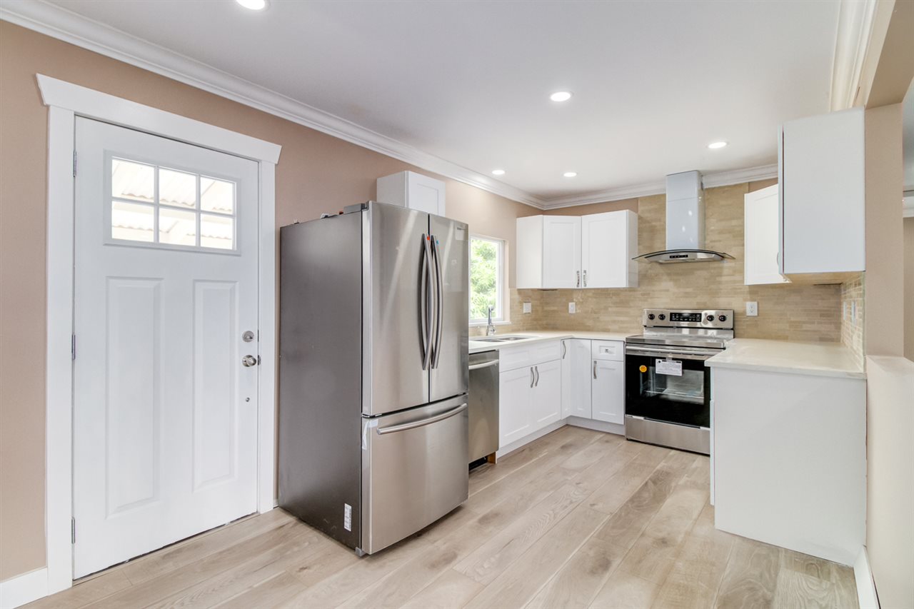 Completely renovated house in central Coquitlam-From top to bottom: new roof, gutter, down sprouts, plumbing, electric wiring, dry walls, double glazed windows for the whole house. Main floor features brand new kitchen: white cabinet w/soft close, quartz counter top, S/S appliances; beautiful laminate floor, crown moulding & ceiling lights; new bathroom w quartz top. Basement also has new floor, kitchen. bathroom. Fresh paint in&out. Large covered deck w mountain view; fully fenced yard w fruit trees. Excellent location in Como Lake area (only 4 blocks to the Lake), close to bus, Parks, shopping, schools, easy access to high way. Catchment: Dr. Charles Best-best provincial ranking (34/246 high school) in Tri-city. Open house Sun. Nov 25 2-4.