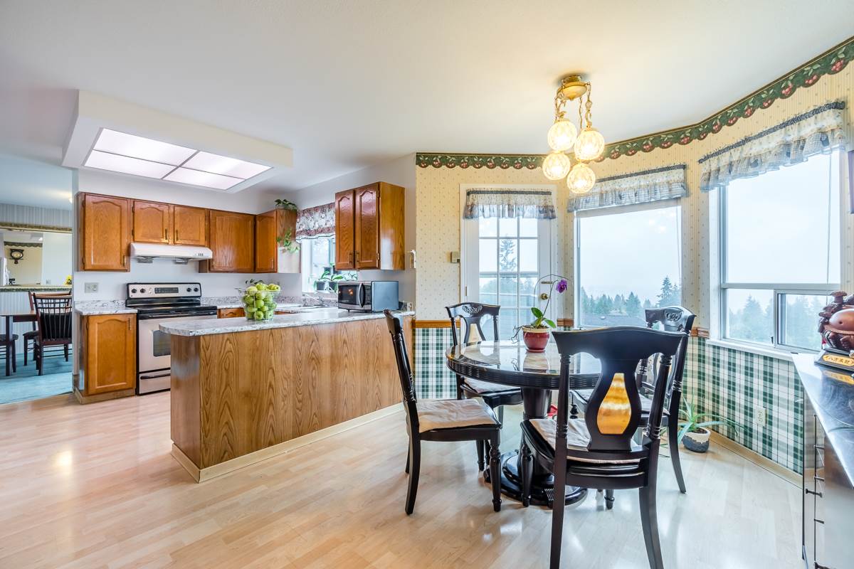 Beautiful views from all 3 levels puts Golden Ears, Mt Baker & the entire Fraser Valley in your backyard! Vaulted ceiling in the living room, good cabinets, pantry, greenhouse area & cozy family room are some of the features on main level. Upstairs are 2 good sized with 5 piece ensuite & sitting area which also enjoys the view. Full size walk-out basement has game room, recreation room & office/den which could be 4th bedroom. Home comes equipped with security system. This home is close to shopping, parks, transit & in a great school catchment area. Sweet home for single family & great chance for investment! Open House: Oct 13/14, Sat/Sun, 2-4pm