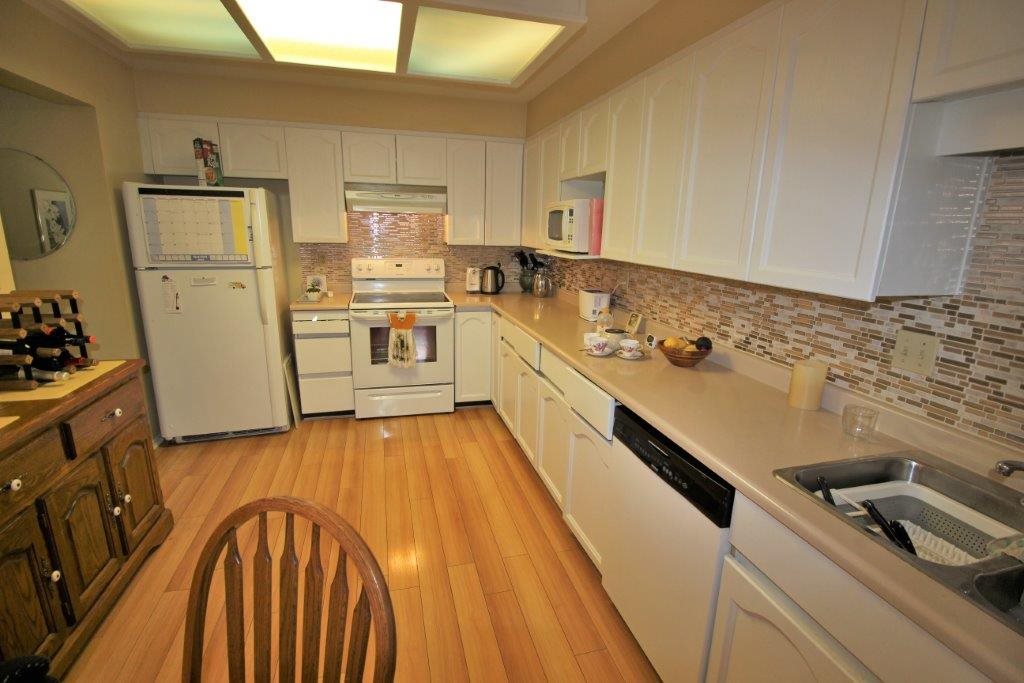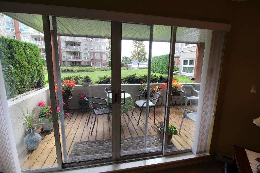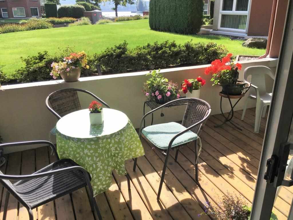 Prestigious Tiffany Shores at the Quay. Huge bright 1430 SF 2 bdrm/2 bath on ground floor with views out to the beautiful & tranquil lagoon, fountains, garden & even a peekaboo River view. The living room features an angled gas fireplace with a cozy corner (on the window side) to curl up in, or perfect for a Xmas tree. Sliding glass door leads out to your large private patio. Huge kitchen with lots of counter space & cabinets. One corner of the kitchen is large enough for an eating area with half the wall open to the dining/living room. The master suite has plenty of closet space & a huge ensuite with soaker tub. 2nd bdrm is good sized. Huge laundry room w/ lots of storage. Pets are welcome. No Rentals. Come enjoy the tranquility of it all here at Tiffany Shores, you'll love it !