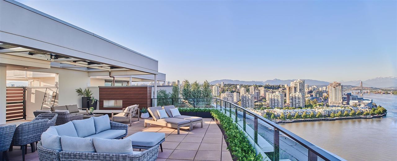 The Peninsula is the crown jewel of Port Royal, a 52 acre master plan community. Placed on the point where the Fraser River parts, the 22 storey tower is shaped and bordered by water on three sides. Magnificent views extend across the Fraser River, capturing stunning city, water and mountain landscape. Offers 3 patios, one a privet, partially covered rooftop terrace, with abundant space for entertaining, features a built in fireplace and kitchen, Interiors ascend to another level of luxury, with bespoke millwork throughout, integrated Gaggenau appliances and a beautiful herringbone-patterned flooring installation in entryways. The Presentation Centre is open daily from 12-5pm (Closed Fridays) Located at 210 Salter St. Open house Saturday, December 8th and Sunday, December 9th @ 12-4pm.