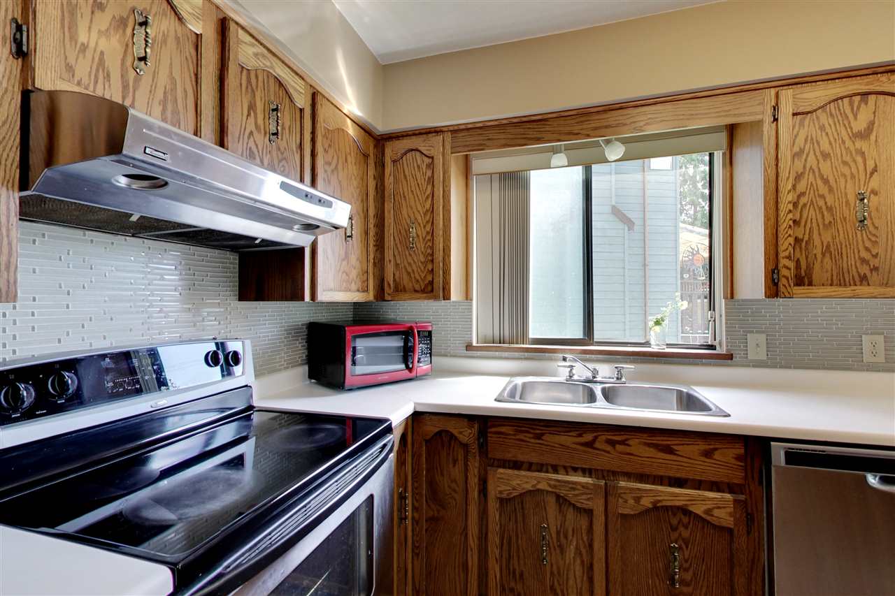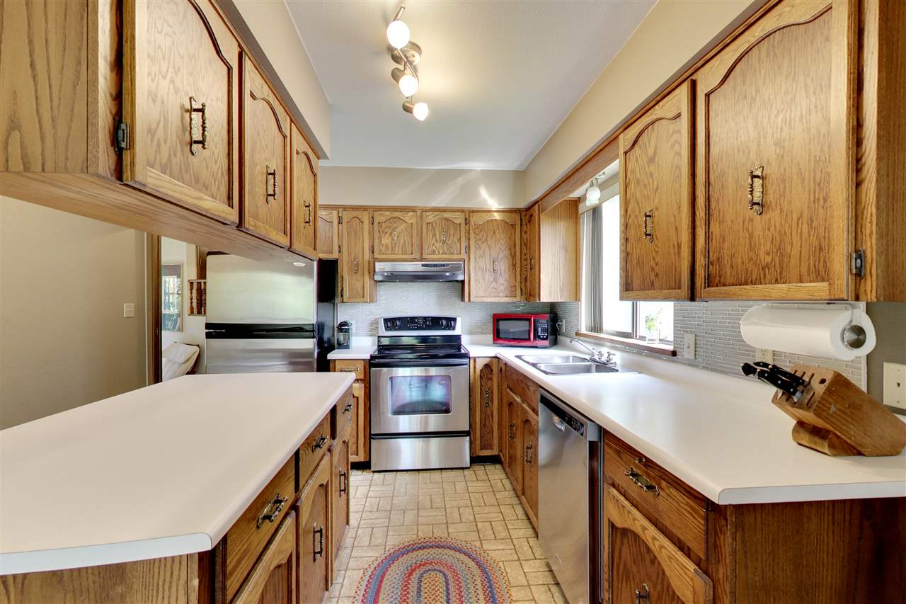 This bright 2 level, 3 bdrm home is tucked away at the end of a cul de sac, serenely situated just off the PoCo Trail, in sought after Oxford Heights. The home backs onto the greenbelt, and the PoCo Trail. Features include Vaulted Ceilings in the Living Room, floor to ceiling stone fireplaces (one gas & one wood burning), & huge open concept kitchen opening onto the wrap around sundeck, newer SS appliances and very large island. Main bathroom completely reno'd with deep soaker tub, new flooring, walls, sink and toilet. New hot water tank & heat efficient furnace. Located minutes from Minnekada Regional Park, Deboville slough, Pitt River and all levels of schooling. Perfect family home.