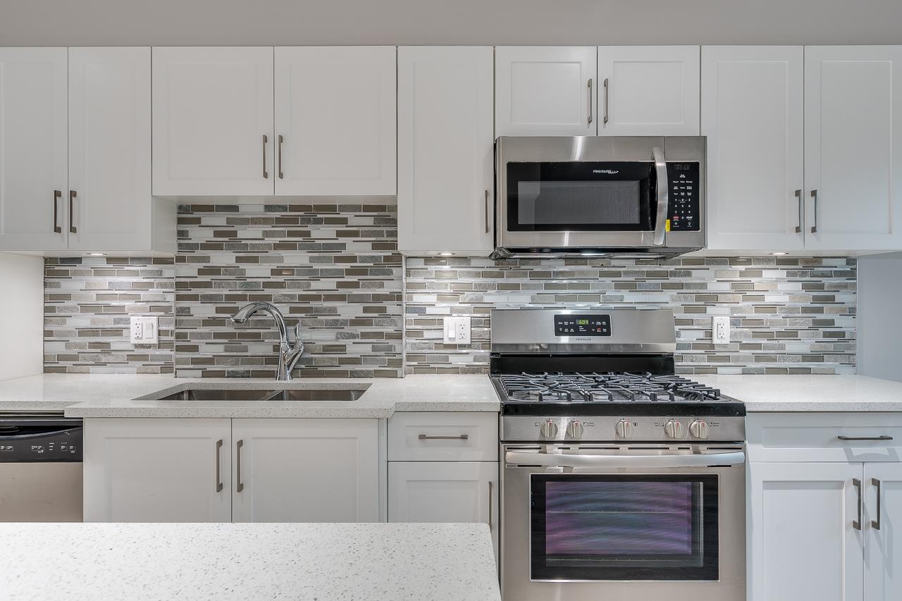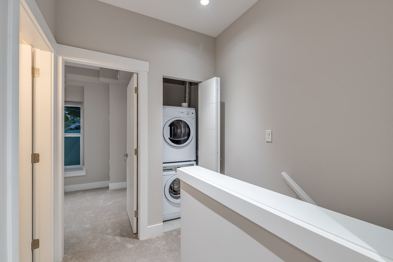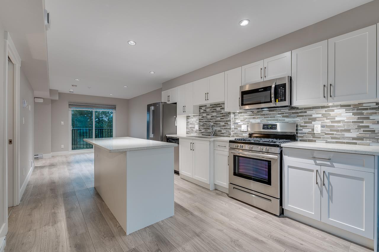 Stunning brand new 2 bed 3 bath modern townhome located in uptown new Westminster. This quality built 2 storey townhome features all the comforts expected in a fresh new build. Main floor showcases beautiful kitchen featuring SS Samsung appliances, front load over with gas stove, dishwasher, backsplash tiles, gorgeous quartz counters, modern white cabinets, and large centered island and direct access to deck with gas connection. From the kitchen opens into airy living space with access to second private deck! Upstairs you will find 2 bedrooms incl. large master with ensuite featuring spa like shower. Home features grey laminate flooring down and brand new carpet upstairs, lots of storage and insuite laundry. Close to shopping parks and recreation!