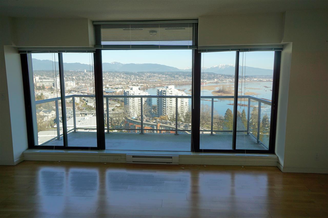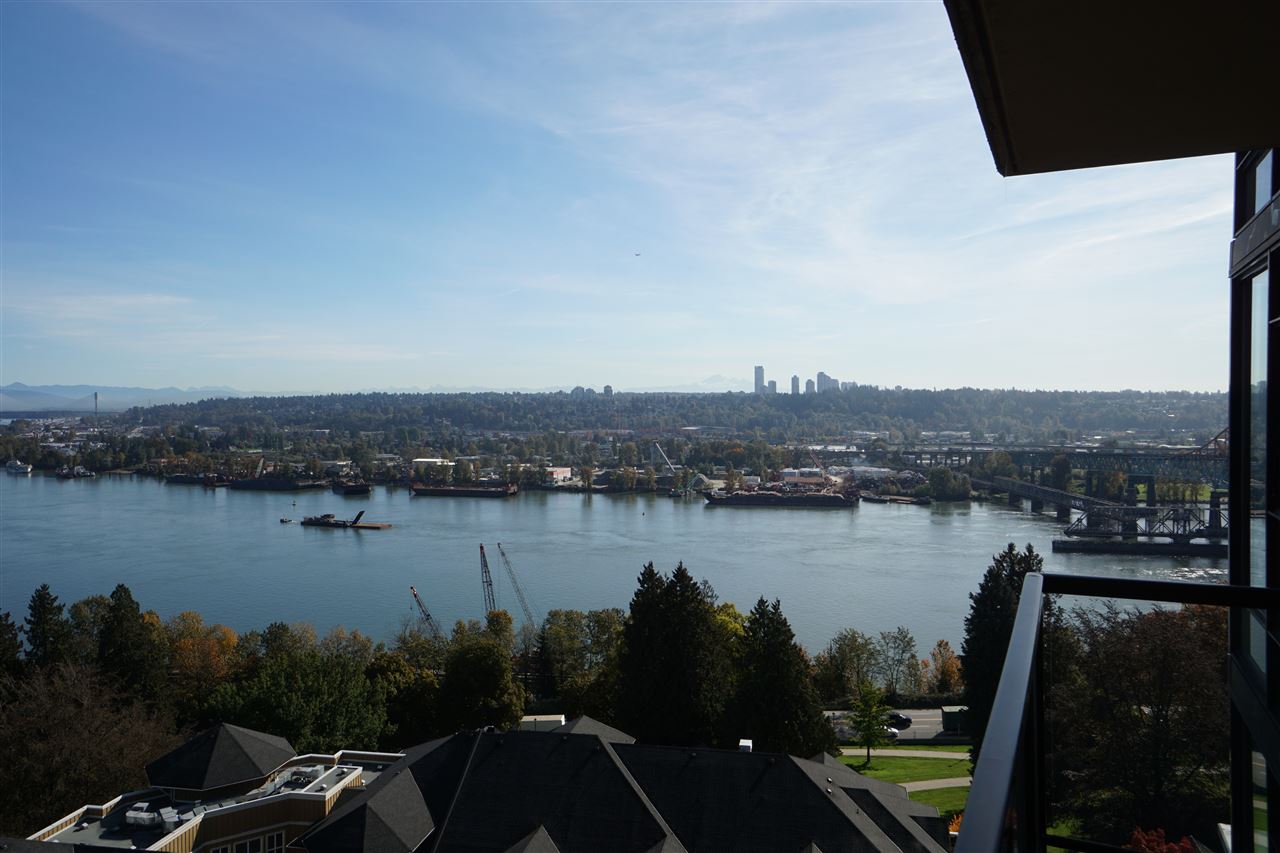 Stunning highrise unit with 180 degrees unobstructed Fraser River & Mt. Baker view from every room! Sunrise, Moon, Stars & fireworks are the bonus. Open floor plan, huge 17ft x 9ft covered balcony, 9 ft ceiling & spacious living space with 2 Bdrs (on opposite ends of the unit), 2 full Baths & large Den (could be 3rd Bdr). Gourmet kitchen with granite counter top, lots of cabinets storage & stainless steel appliances. Best facilities with swimming pool, hot tub Jacuzzi, sauna, billiards room, gym, club house, garden & 2 guests suites! 2 side by side parking stalls near the entrance/exit & 1 big storage locker - 2007 Georgie Gold Award Residential Development of the Year. Steps to transit & Queens Park. Must see!