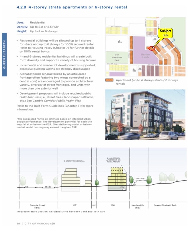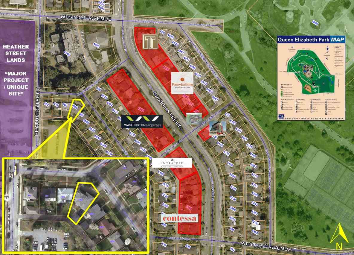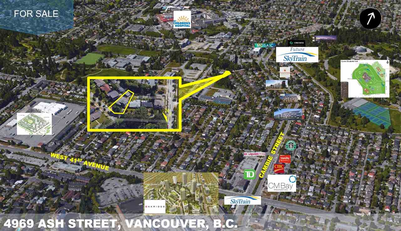 Developers and investors; Cambie Corridor Phase 3 site. Areas proposed for change in Cambie Corridor Phase 3 Draft Plan from City of Vancouver shows the subject site as apartment (up to 4 (2.0 FSR) storeys strata/6 storeys rental (2.5 FSR). Subject site is located on the south-west corner of Ash Street & McGuigan Avenue. This site is just steps away from Queen Elizabeth Park which includes Seasons Restaurant, Pitch & Putt Golf, Garden & the Observatory. The site is walking distance to the Oakridge Center & the skytrain station.