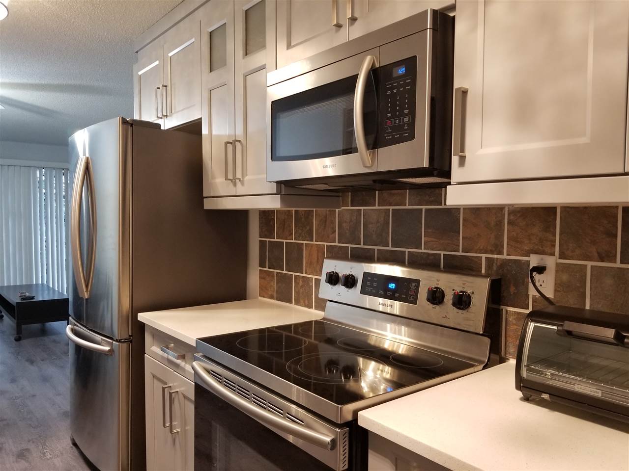 This one bedroom unit comes with a large balcony. Washroom and kitchen have been renovated with quartz counter tops. Features updated stainless steel appliances in almost brand new condition. Updated laminate flooring, paint and blinds. Walking distance to Edmonds Skytrain station, Highgate village shopping centre, the public library and the Edmonds Community Centre. Strata allows only 2 persons to occupy 1 bedroom units.