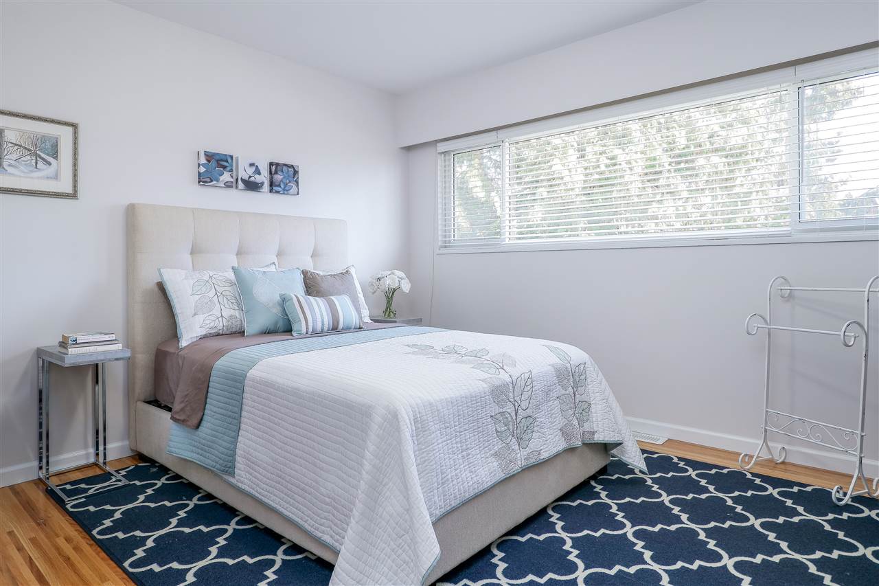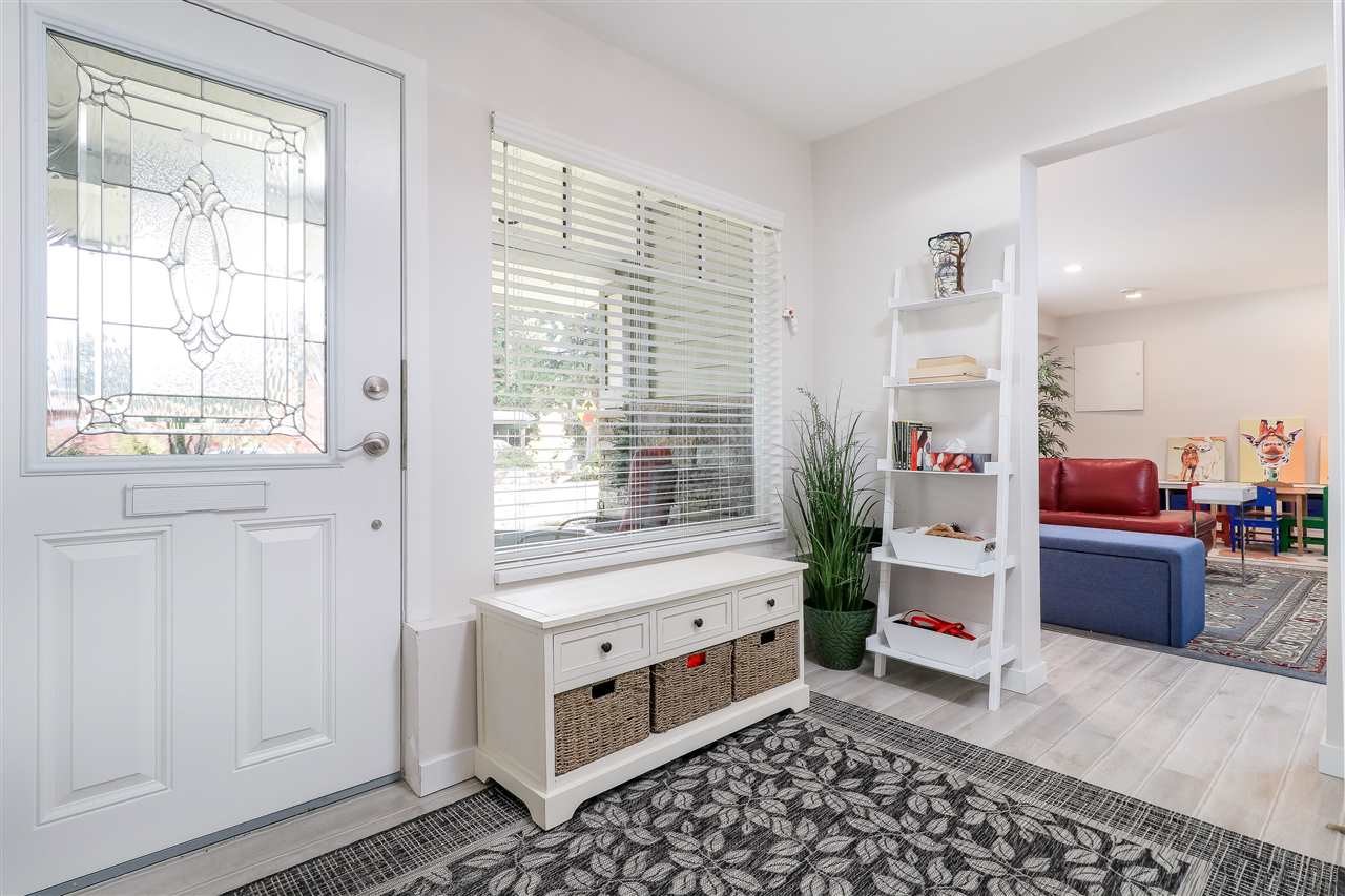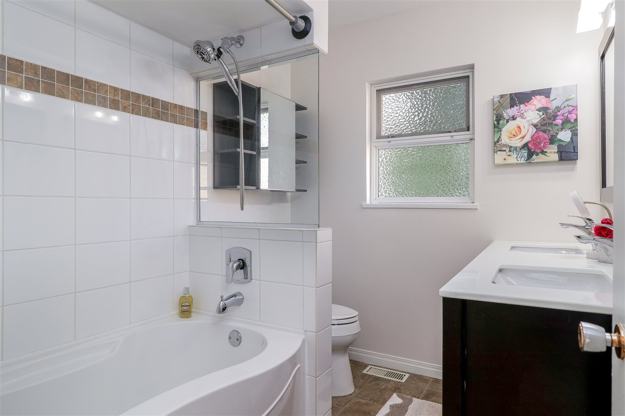 Established neighbourhood walkable to everything & mins to Skytrain & HWY 1. Mid century modern features with oak H/W with inlay & corner fp with slate hearth. Spacious Reno'd main floor, maple & SS kitchen w/banquette eating area and access to huge, level backyard w/removable dog run, 5 piece main bath w/ soaker & double sinks. Easy summer kitchen with sep entrance down and all new with gas fireplace, wood look vinyl floors, huge bedroom with WIC/Den, luxury bath and more. All new wiring, windows, furnace, hot water tank, heat pump, 2 electrical panels. Single carport plus single enclosed (insulated and drywalled) garage with DOG WASH station (gardeners/mechanics). All appliances replaced last year and new fibreglass decking. Don't miss this one on your tour.