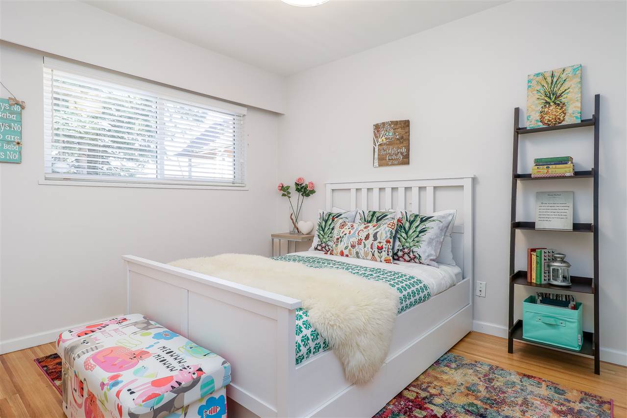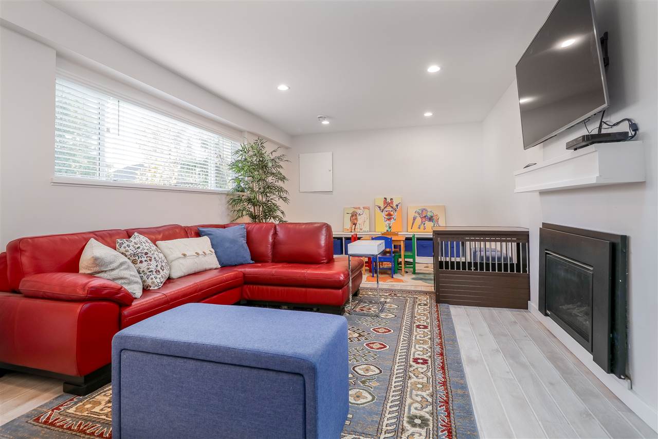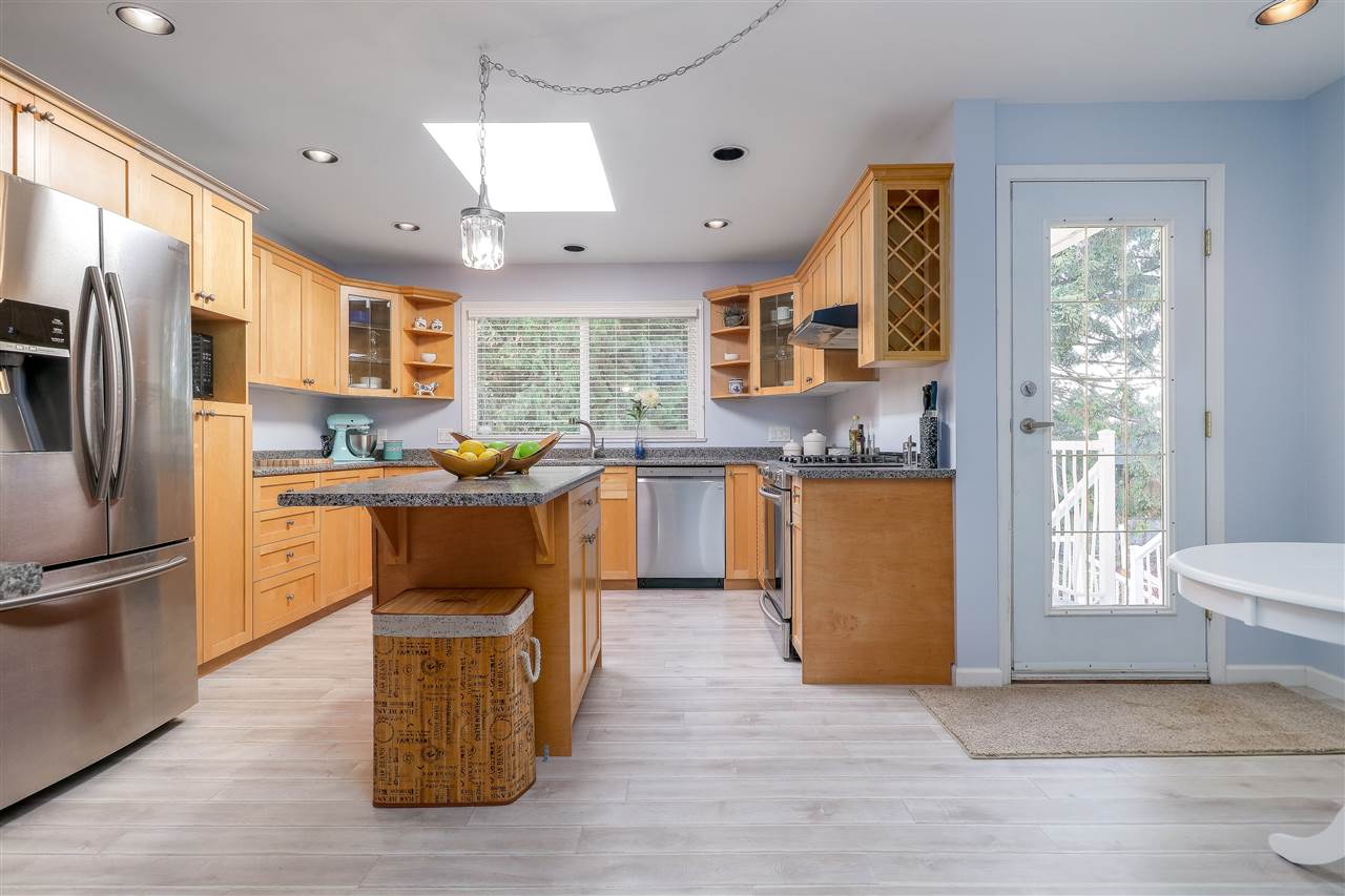 Established neighbourhood walkable to everything & mins to Skytrain & HWY 1. Mid century modern features with oak H/W with inlay & corner fp with slate hearth. Spacious Reno'd main floor, maple & SS kitchen w/banquette eating area and access to huge, level backyard w/removable dog run, 5 piece main bath w/ soaker & double sinks. Easy summer kitchen with sep entrance down and all new with gas fireplace, wood look vinyl floors, huge bedroom with WIC/Den, luxury bath and more. All new wiring, windows, furnace, hot water tank, heat pump, 2 electrical panels. Single carport plus single enclosed (insulated and drywalled) garage with DOG WASH station (gardeners/mechanics). All appliances replaced last year and new fibreglass decking. Don't miss this one on your tour.