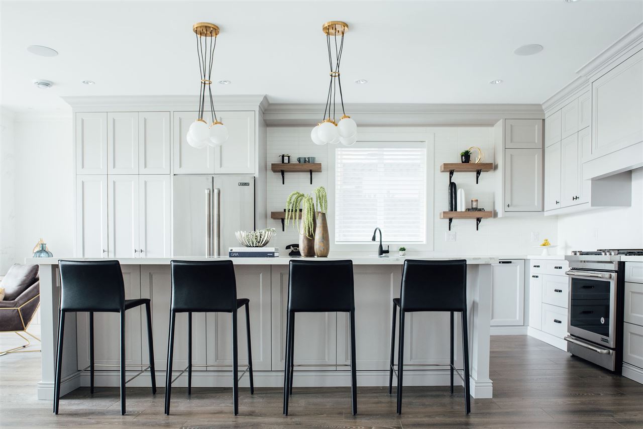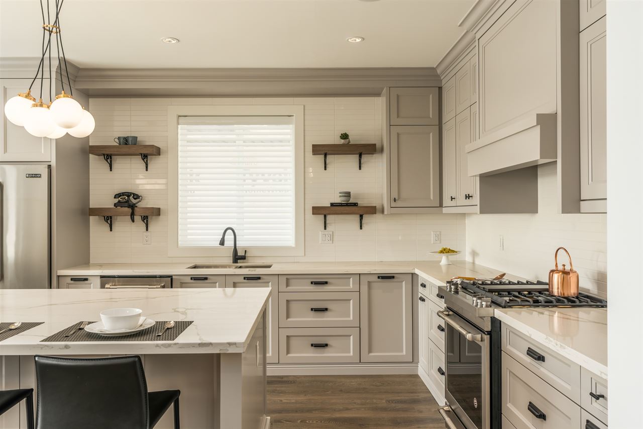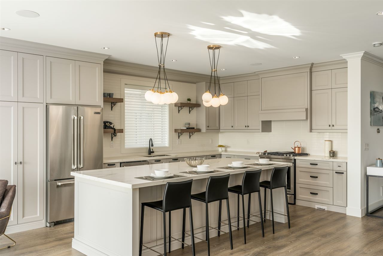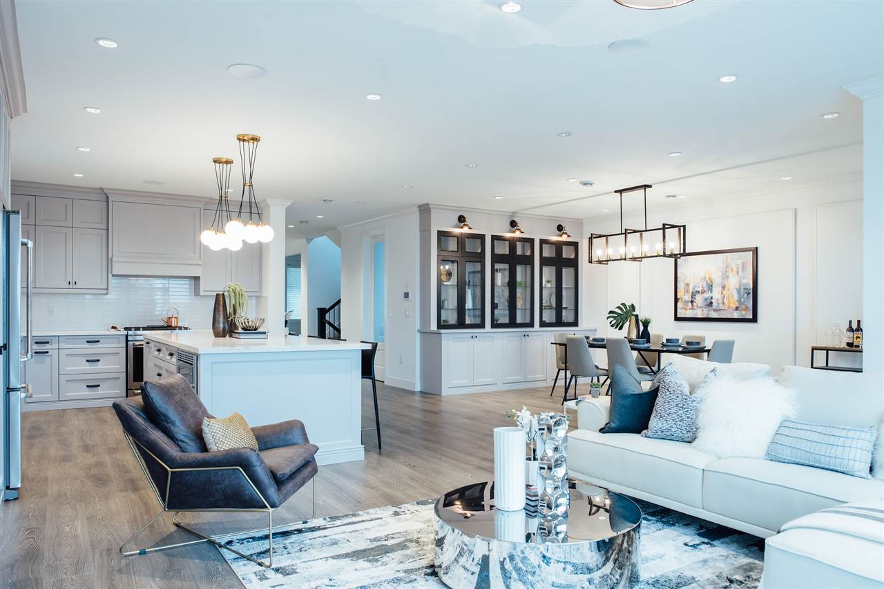 ONE-OF-A-KIND view property in Central Location. A Craftsman MASTERPIECE offering a balance of timeless design, contemporary charm, and functionality spread over nearly 4,800sf of luxury living featuring custom interior design & millwork/cabinetry, Italian tile & stone, radiant in-floor heat + A/C, full spice kitchen, home theatre system and more! Main floor offers EXPANSIVE open kitchen/living/dining areas including 10' island, with high-end appliances, family room leads into large patio with Fraser River views. Upstairs offers 4 beds & 3 baths and a WALK-OUT BASEMENT with home theatre room and additional living area with 3 beds & 2 baths. COACH HOUSE in rear, perfect for additional rental income. MUST SEE TO APPRECIATE, too many features to list.