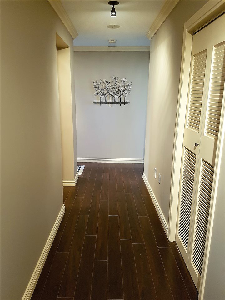 Wow! Original owner has continually renovated and updated this corner home incorporating the private, treed outlook with no one in front or across. A breakfast bar opens onto the family room from kitchen; an entertainer’s dream. Custom chocolate laminate throughout. Huge 150 sq ft tiled balcony for gardening and BBQ’s. Both bedrooms have their own ensuite bathrooms and a 3rd bathroom for guests. Walk to the river boardwalk and the Skytrain. Highlights include walls of windows, mirrored closets, crown molding, high baseboards, gas fireplace with a laundry room / pantry and ceiling fans.