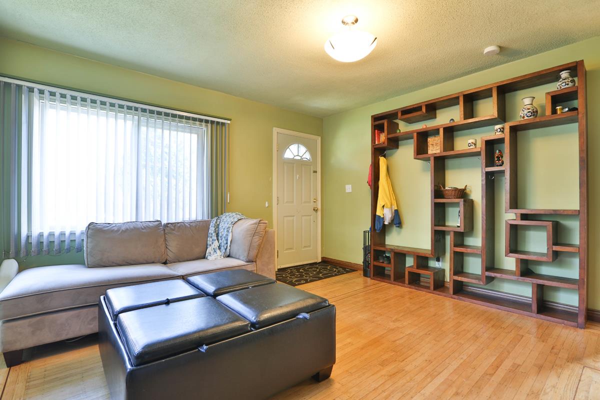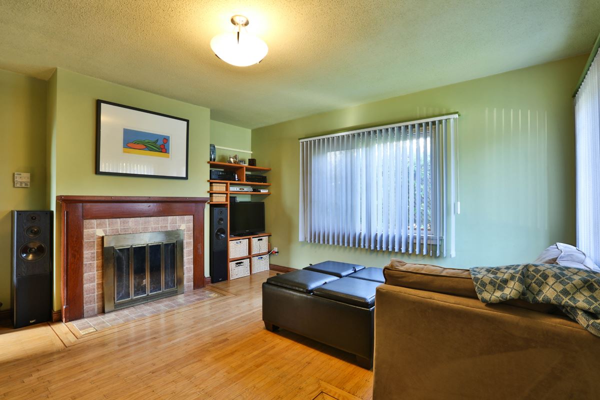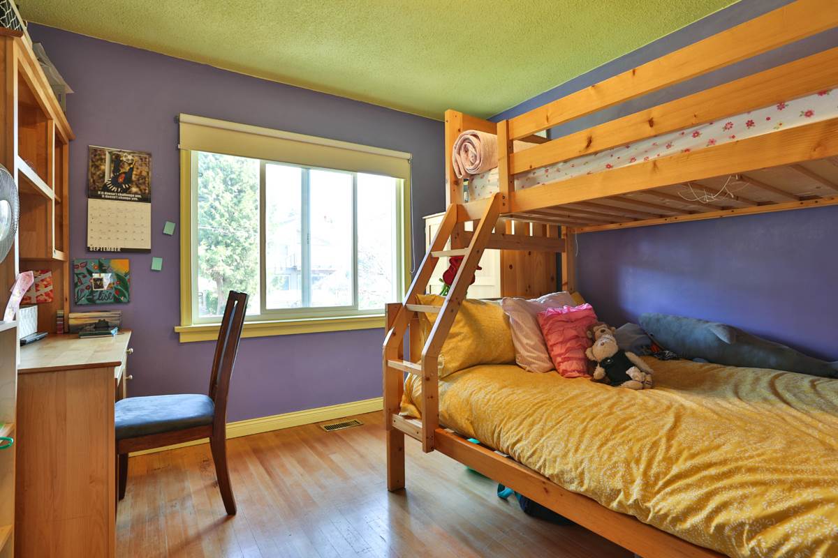Welcome to Bowler Street. One of the nicest little family streets in the city. This affordable home is easy walking distance to Lord Tweedsmuir Elementary and Grimston Park. This 2 bedroom bungalow is full of surprises. It boasts a family room off the large functional kitchen with an island and pantry and a large walk-in closet off the master bedroom. The hardwood floors, wood burning fireplace and original mantel give this home a heritage feel. A large deck off the kitchen creates outdoor living space. Great for large summer family functions and BBQ's. A sunny side-yard gives the children room to play. Double carport at rear of home. A large two bedroom suite in basement completes this home. Short walk to skytrain.
