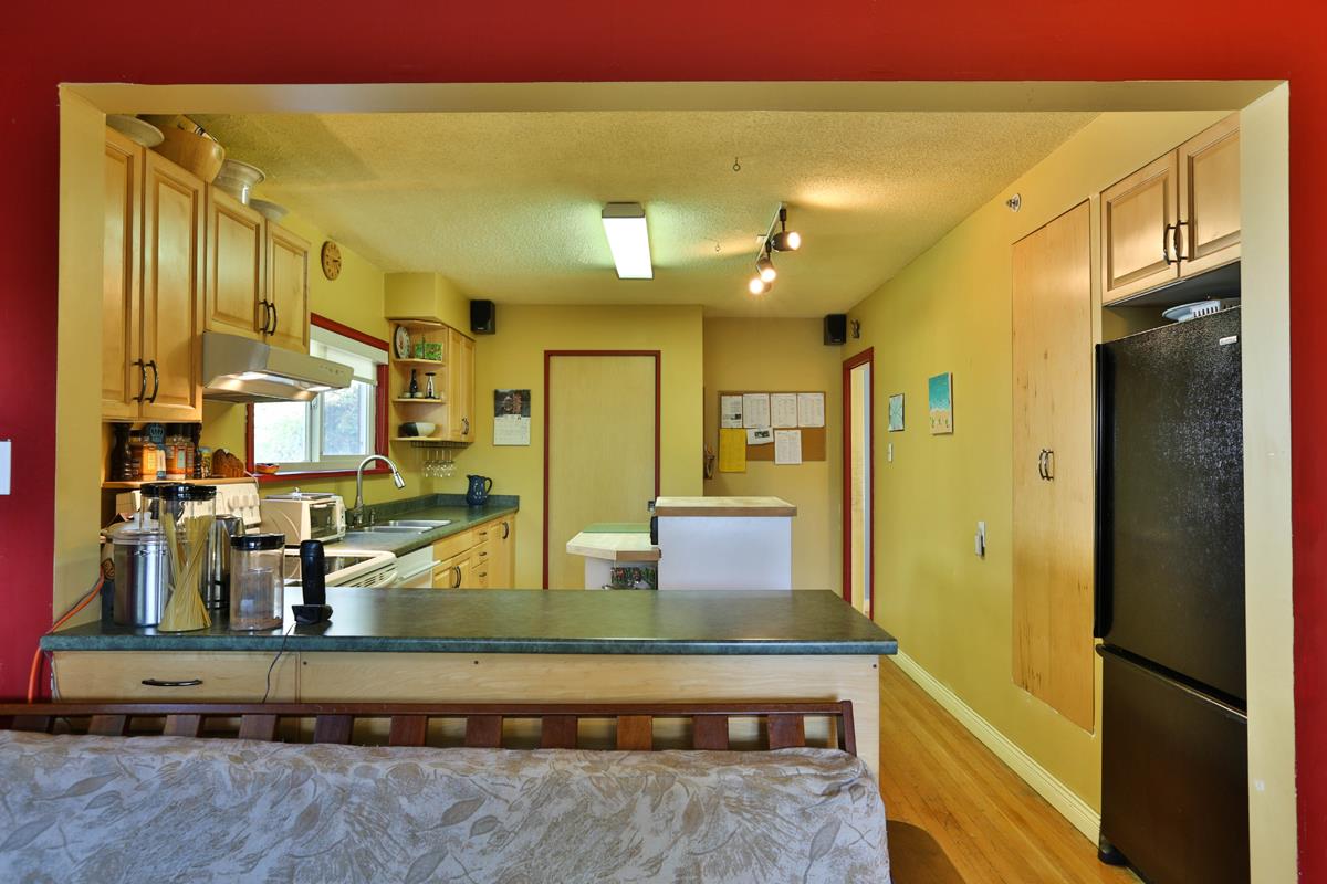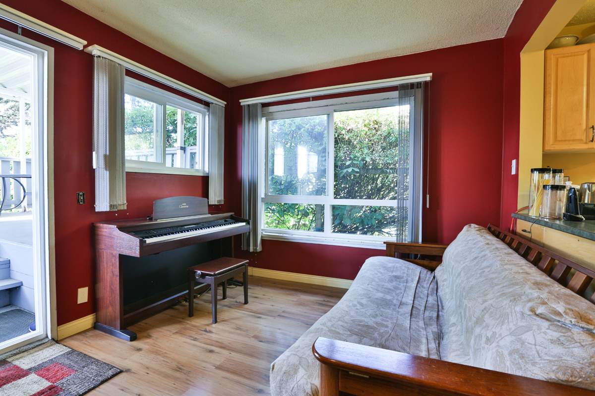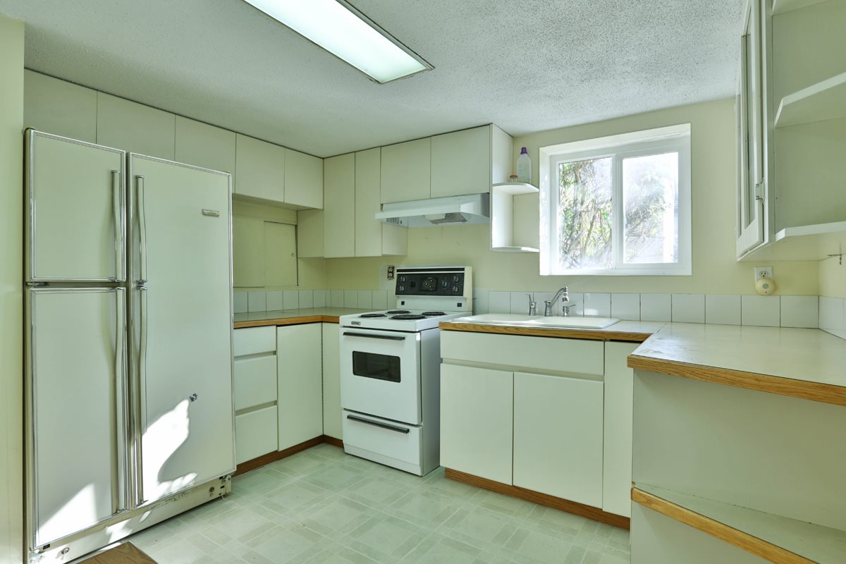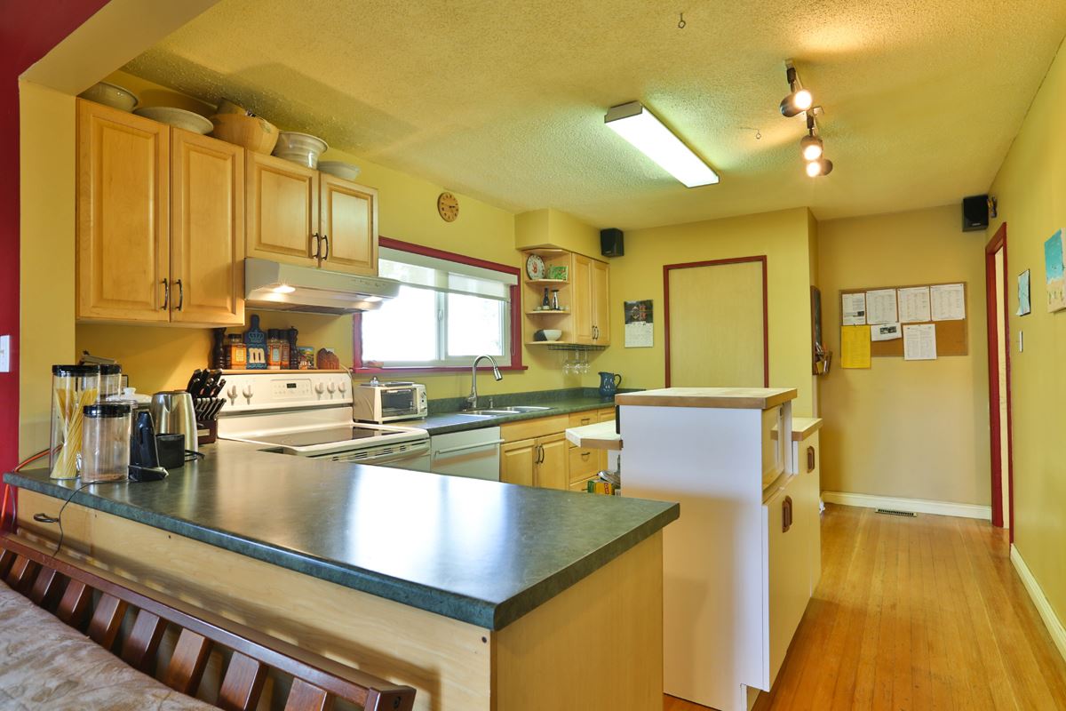 Welcome to Bowler Street. One of the nicest little family streets in the city. This affordable home is easy walking distance to Lord Tweedsmuir Elementary and Grimston Park. This 2 bedroom bungalow is full of surprises. It boasts a family room off the large functional kitchen with an island and pantry and a large walk-in closet off the master bedroom. The hardwood floors, wood burning fireplace and original mantel give this home a heritage feel. A large deck off the kitchen creates outdoor living space. Great for large summer family functions and BBQ's. A sunny side-yard gives the children room to play. Double carport at rear of home. A large two bedroom suite in basement completes this home. Short walk to skytrain.