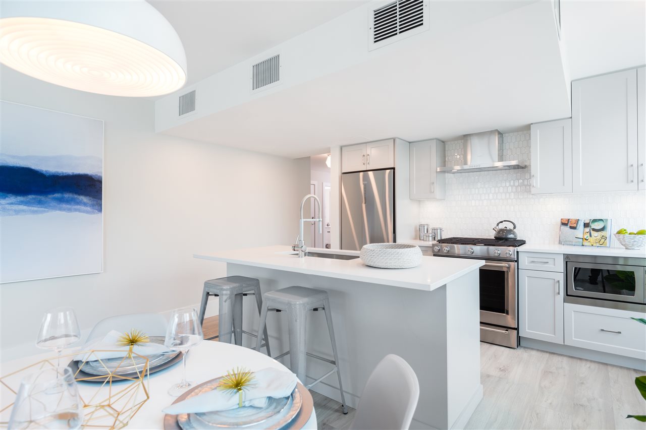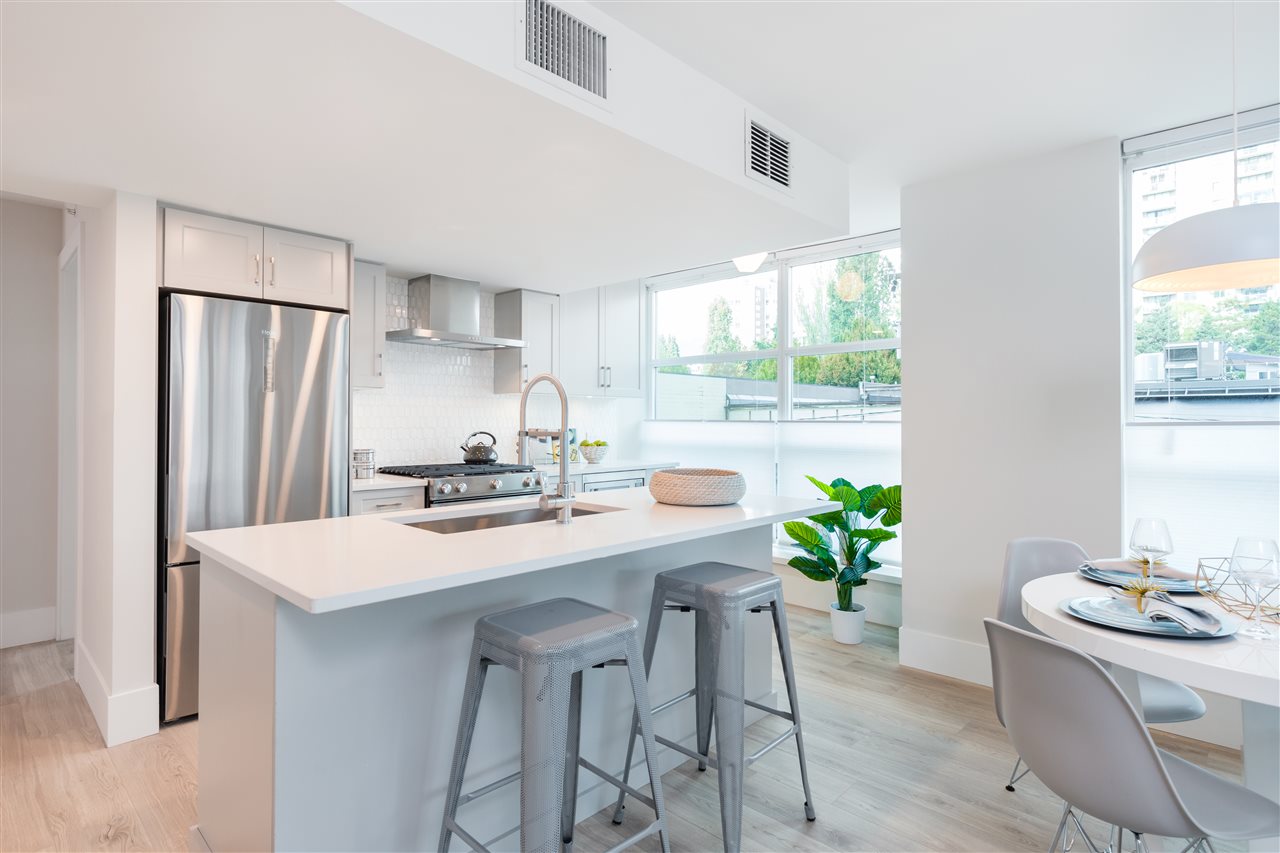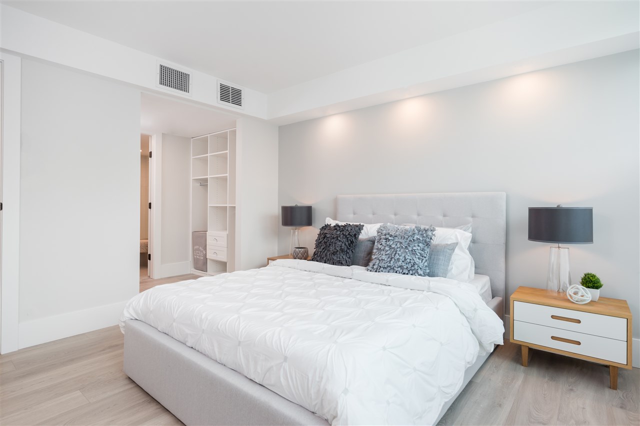 Professionally redesigned by Alter Homes, this 2 bed/2 bath home has received a top to bottom update and the transformation is simply stunning. This spacious and bright corner unit has been thoughtfully reimagined into a modern and sophisticated space-ideal for a discerning downsizer, young couple/family who don’t want to sacrifice style or location. The home features an open concept chef’s kitchen (w/ oversized island and new SS appliances), contemporary bathrooms and enviable master suite with large WIC and dreamy ensuite bath-it truly ticks all the boxes! Additional designer details include new flooring, lighting and paint throughout. All of this in a solid concrete building (w/ A/C) in a perfect Lower Lonsdale location, walking distance to the best this vibrant community has to offer.