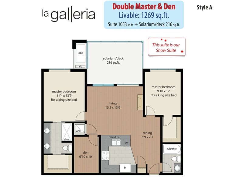 LA GALLERIA condo in Abbotsford, ready in February 2019!! Awesome location within walking distance to stores, medical offices, shopping & restaurants, directly across from City Hall & Public Library. Main floor facing east with direct access to the outside world. 2 bedrooms, 2 bathrooms plus den, S/S appliances, granite counters. Also includes a large retractable glass solarium with natural gas outlet for BBQ; perfect for year round entertaining as it does not share a wall with another suite. Each suite comes with its own heat pump (AC/heating system), 2 under ground parking stalls & large storage locker with power. BONUS - low strata fees include 5 years of Shaw Cable & Internet, gas, hot water & gym. Rentals & pets allowed.