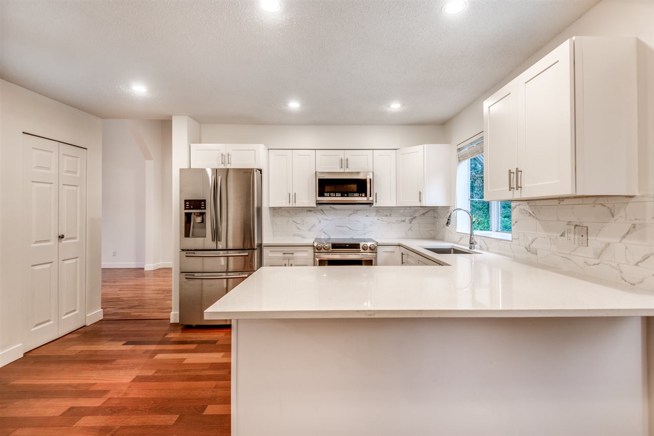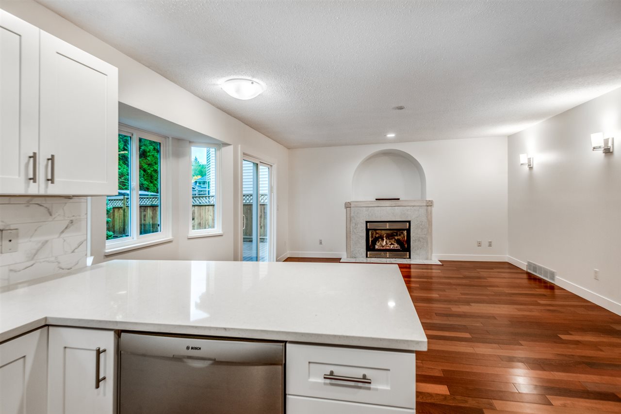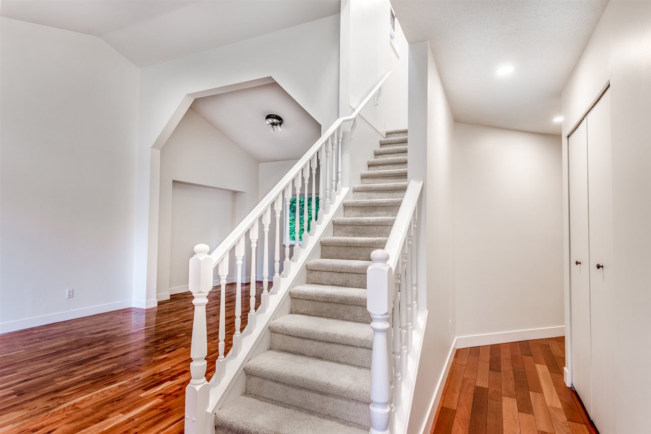 This recently updated home is nestled at the end of a cul-de-sac and backing onto a greenbelt for your utmost in privacy. The bright main floor includes a huge living room & dining room with vaulted ceilings & hardwood floors, updated kitchen with quartz counters, hardwood shaker cabinets, breakfast bar, high end stainless steel appliances, nook & adjacent family room with gas fireplace & access to your huge deck. Powder room and laundry round out the main. Up are 3 bedrooms including a large master with 4 piece ensuite and good sized walk-in closet. Fresh paint, carpets, baseboards & casings, new sinks, tile and cabinetry in the bathrooms. Bring the family to this perfect neighbourhood; safe and secure, close to shopping, schools & recreation.
