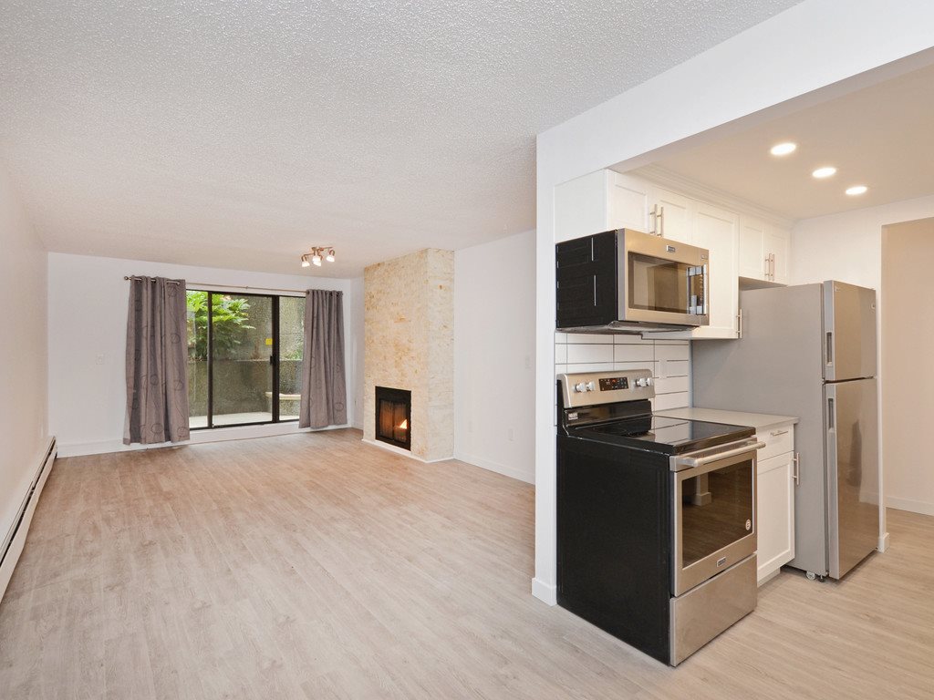 YOU'LL BE HOME FOR CHRISTMAS. Immediate possession available. FULLY RENOVATED one bedroom garden apartment in IZUMIDONO with very private patio and cozy gas fireplace. Walk to work at the hospital, live and enjoy historic Sapperton in this beautifully updated suite. New flooring, paint, lights, closets & NEST smart thermostat. bathroom with all new fixtures, including the tub. Kitchen with all new fixtures, tiles, flooring, quartz countertops and all new stainless steel Maytag appliances, including dishwasher and microwave. VENTLESS WASHER/DRYERS PERMITTED! Heat, hot water & gas incl in maint fee. An amazing suite in a great location perfect for your first place or downsizing. 19+ building, no smoking, no rentals, 1 cat or dog (max 12" & 30lbs). YOU'LL LOVE IT!