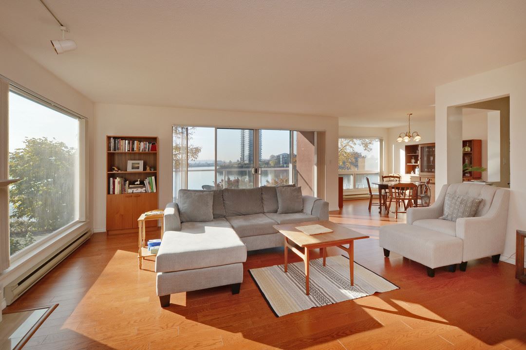 Riverfront living at it’s best! Tiffany shores, one of the most well maintained, rainscreened buildings on the Quay. Corner unit… Enjoy your river views from nearly every room in the home. With an extra large living/dining room you’ll have no trouble finding a place for your house-sized furniture and everywhere you look, you will see the water! Engineered oak hardwood floors make for inviting spaces, turn on the gas fireplace and you’re all set! No need to fear downsizing. This home comes with ample insuite storage as well as 2 additional storage lockers and 2 parking stalls. Take a short 10 minute stroll down the boardwalk to the Rivermarket, Skytrain, Westminster Pier Park.