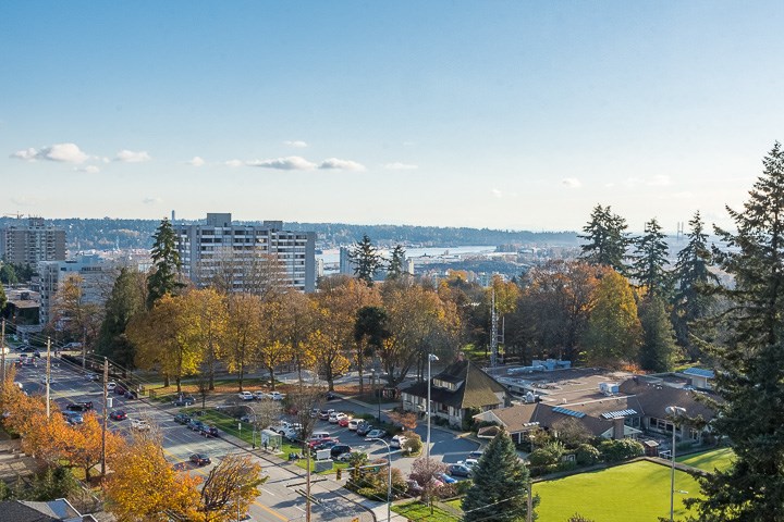 Welcome to The Statesman, a well-cared for high rise concrete building in desirable uptown New Westminster. Enjoy panoramic views all the way from Alex Fraser Bridge to SFU Mountains & beyond in this private & spacious 2BD home. Comfortable living & dining areas w/views offers a pleasant space to entertain family & friends. Spacious Master bedroom will easily fit a King size bed. Bright sunny solarium extends your living space & makes it a great spot for home office, hobbies or a relaxation area. Supreme location is in walking distance to all amenities including, parks & recreation facilities, Century House, lawn bowling, tennis courts, pool, schools, transit, doctors & dentist offices, banks, shops & restaurants. Comes w/ 1 parking & 1 storage locker. EASY TO SHOW!