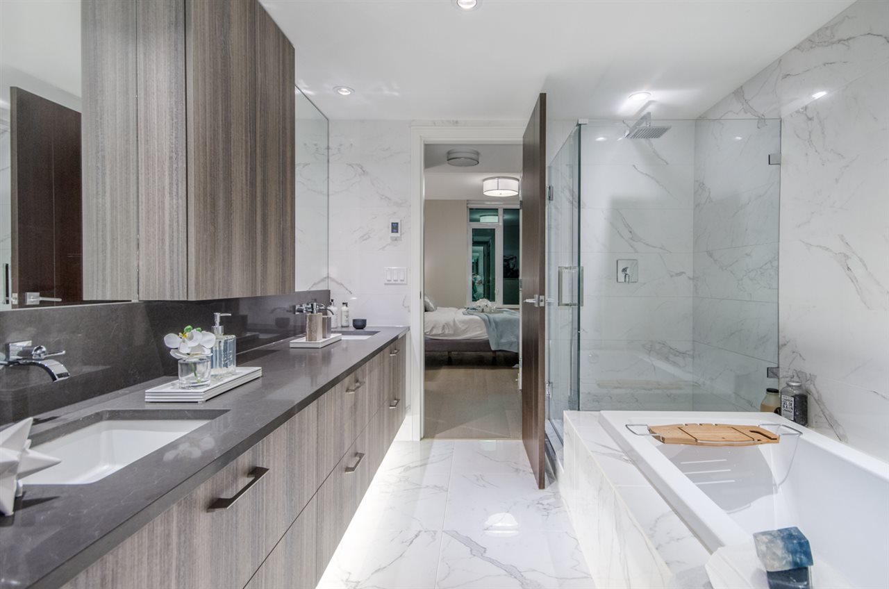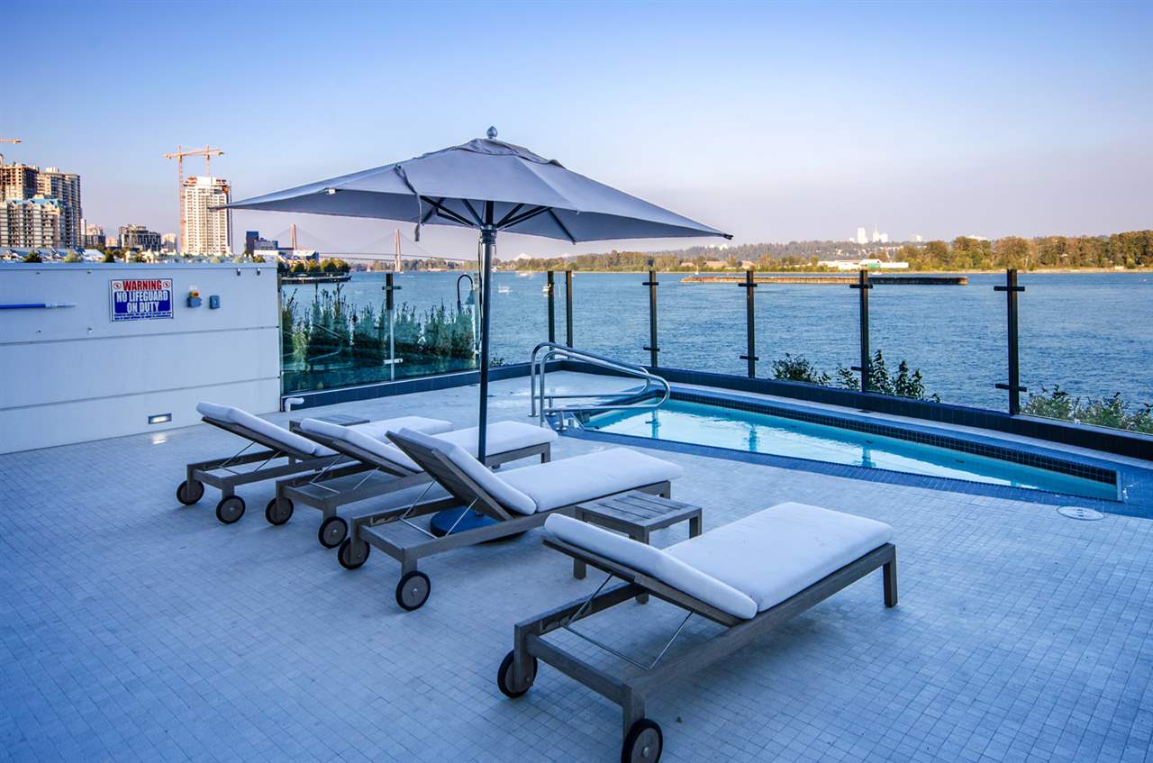 The Peninsula, by Aragon is 22 stories of luxurious waterfront living. Situated along the Fraser River you'll love the water, mountain and city views from your covered balcony. No detail was left out with this 2 bed home w/1 pkg &1 locker. Engineered hardwood floors, a spacious Kitchen w/ Integrated Gaggenau appliances & quartz counter tops,geothermal heating/cooling, wall mounted electric fireplace w/custom wood feat. wall & Spa inspired bathrooms w/ quartz counters & porcelain tiled floors are all incl. A concierge, hot tub, gym, theatre & gourmet chef's table are also a part of the experience. Enjoy peaceful walks on the seawall or just hang out at the Port Royal Park. You're gonna love it here!